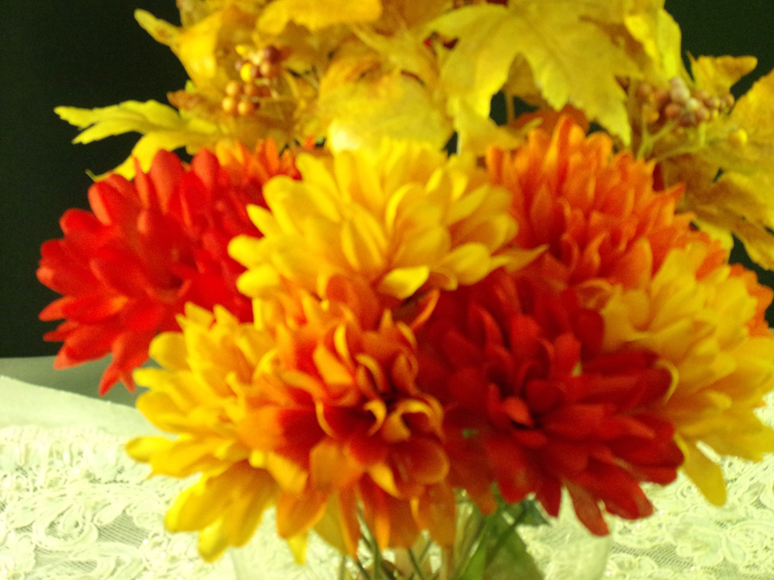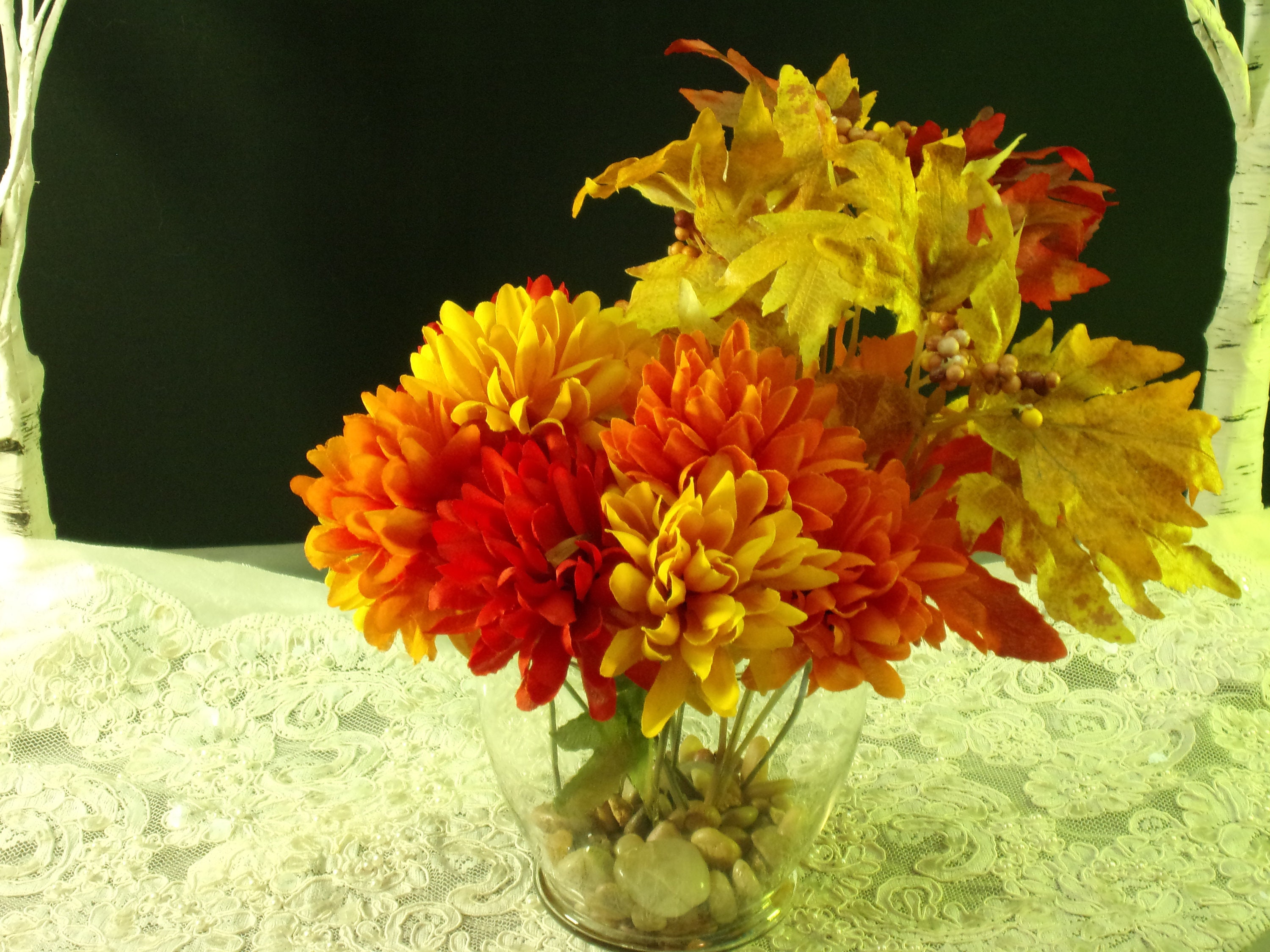 Full-Bloom Zinnias: Crafted to capture the vibrant beauty of late summer and early fall, our zinnias come in a rich palette of deep oranges, reds, and yellows, bringing warmth and color to any space.