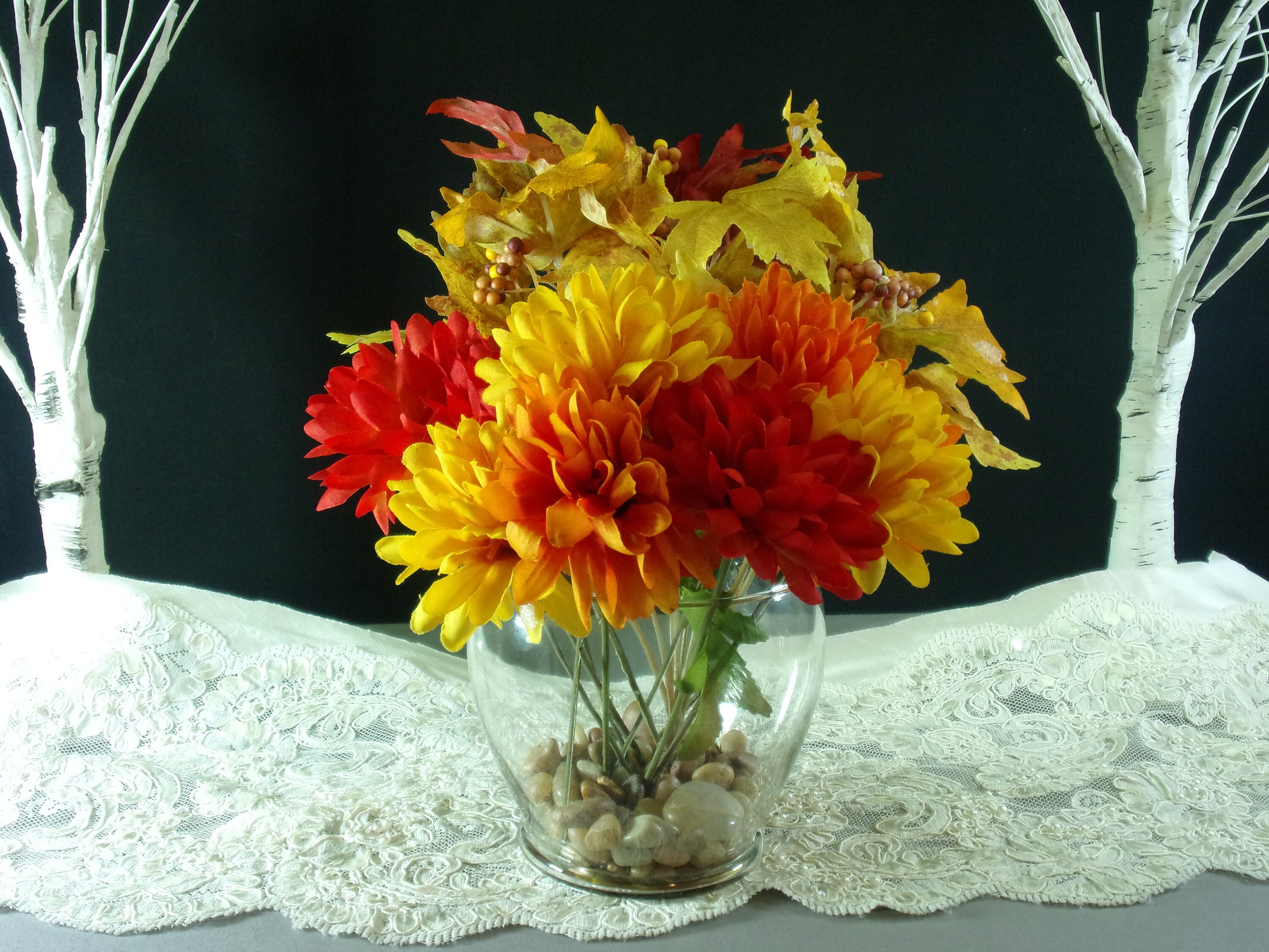 Add a touch of autumn elegance to your home with our stunning artificial flower centerpiece. This exquisite arrangement features: