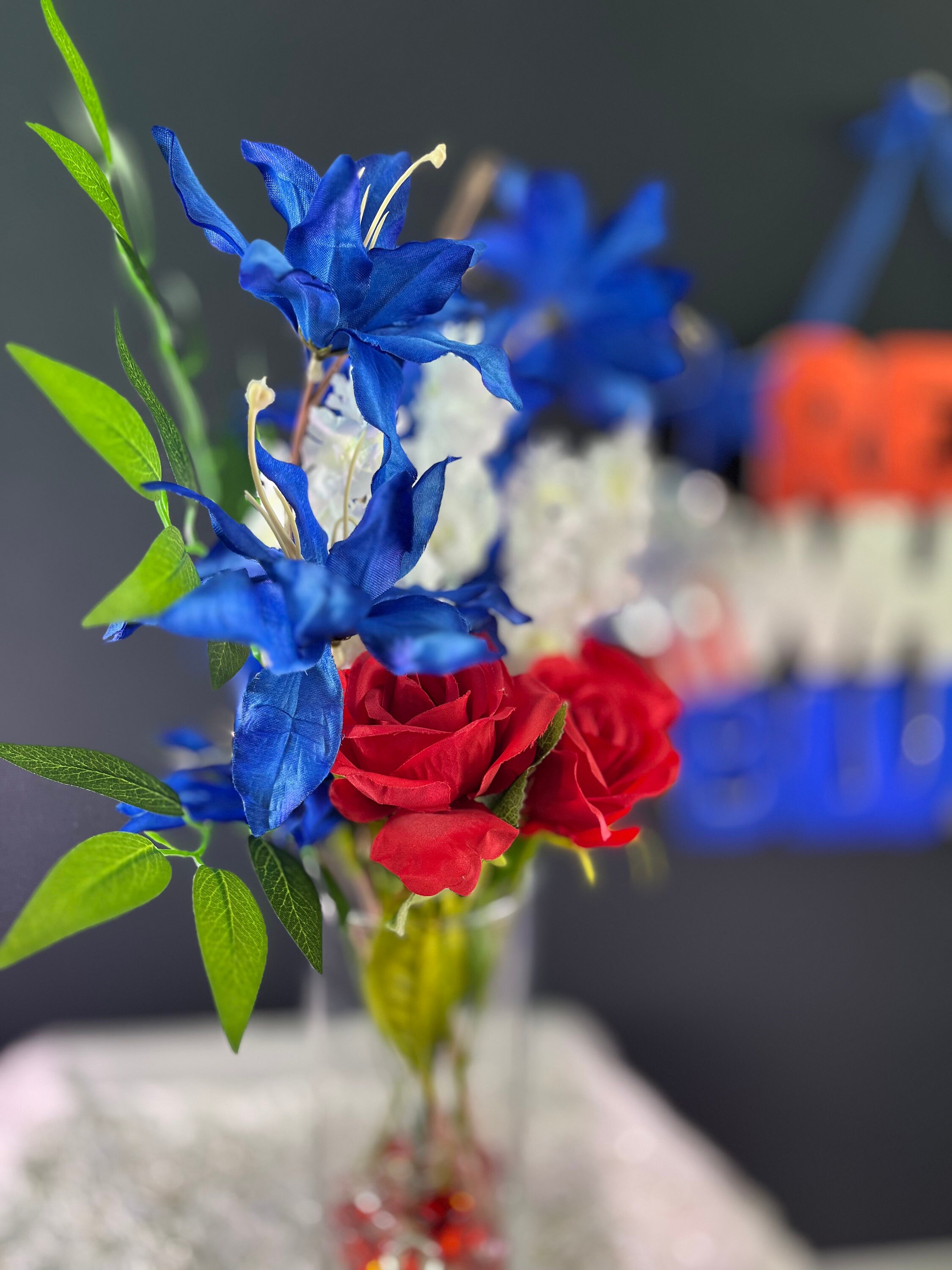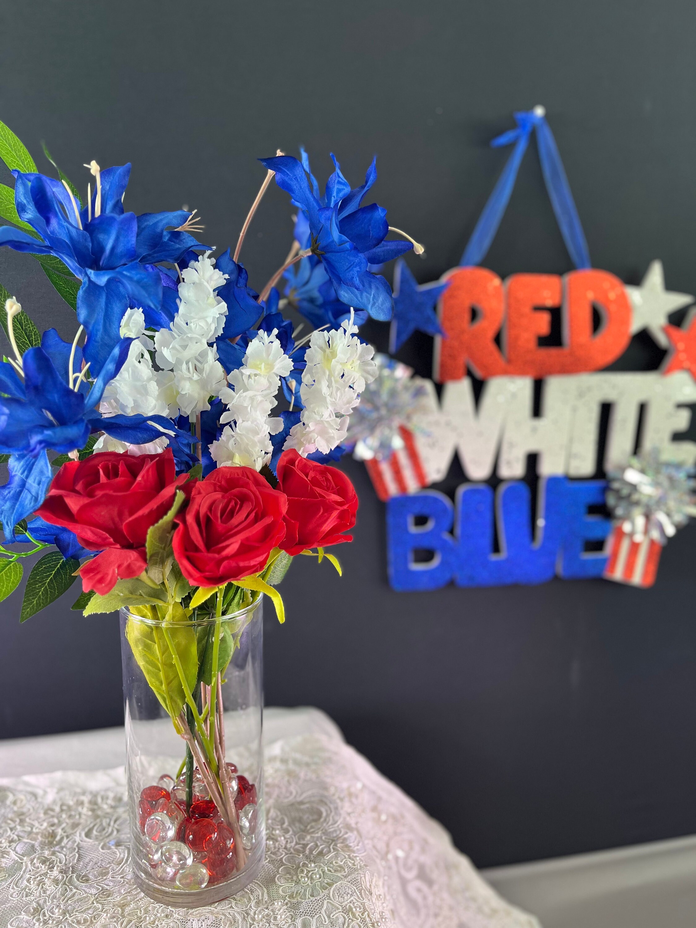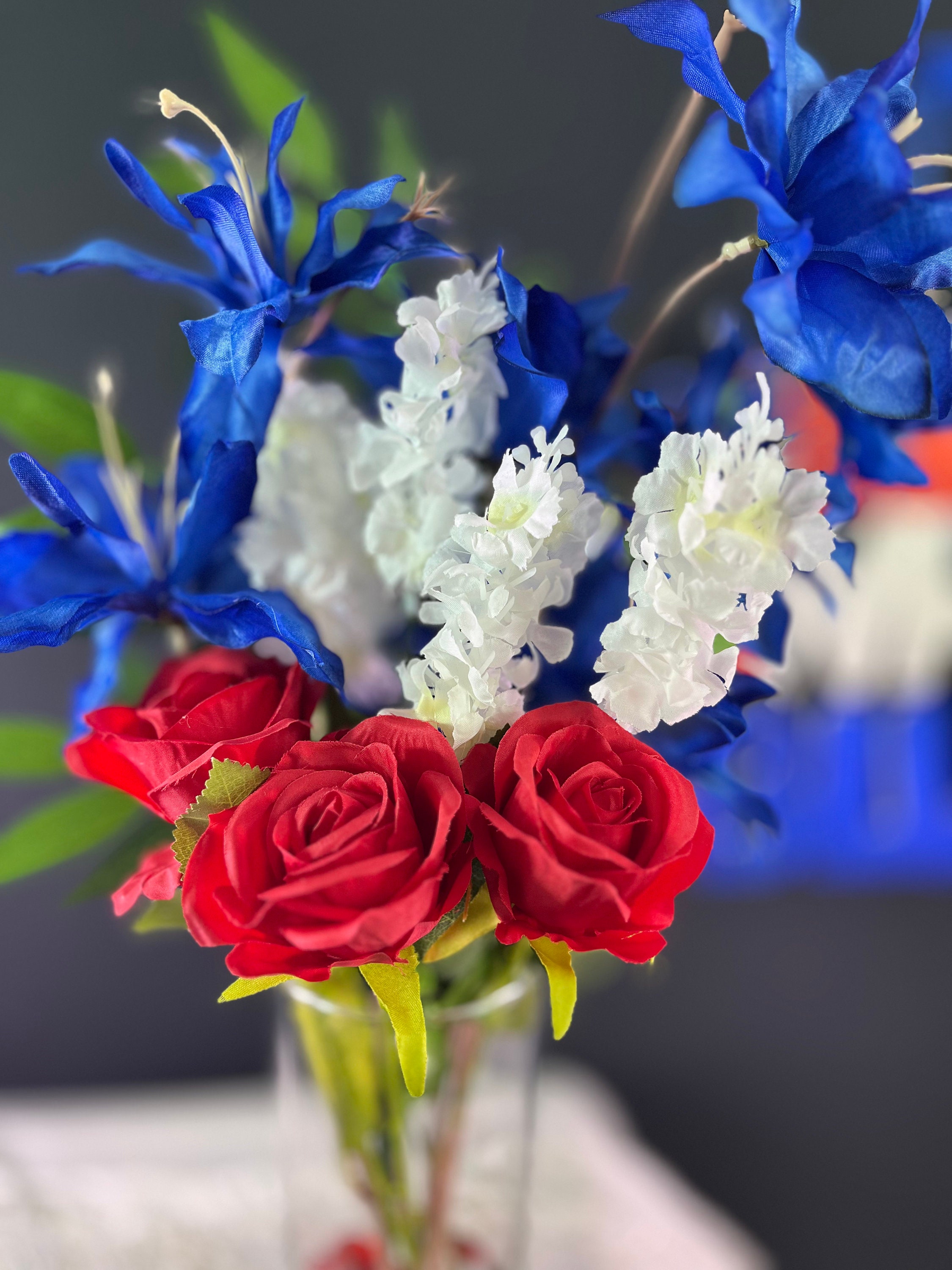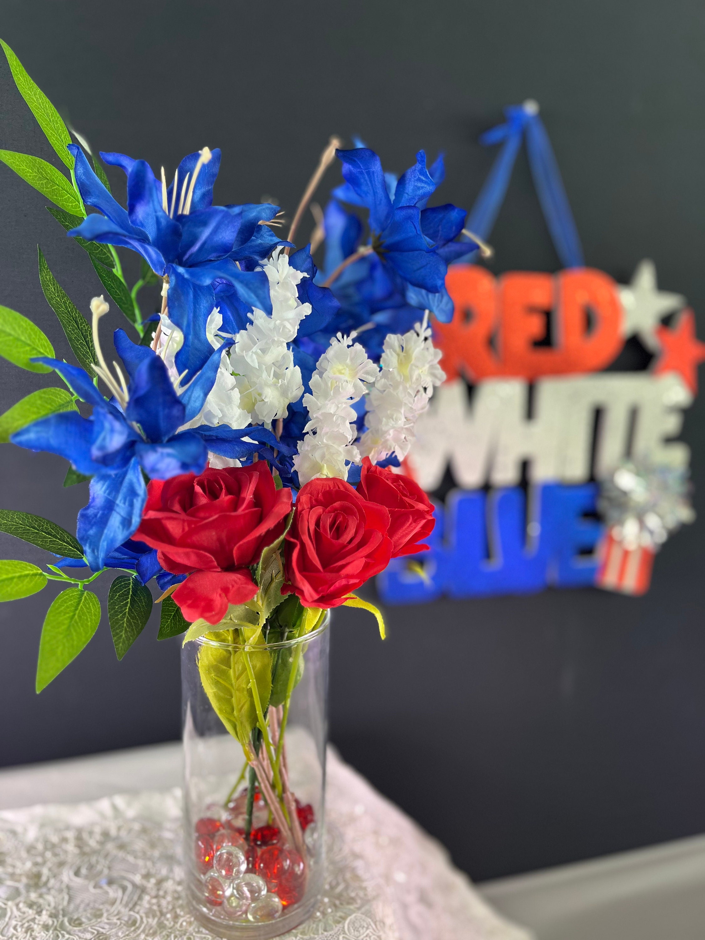 Home Decor: Brighten up your living room, porch, or dining area with this festive arrangement, adding a touch of patriotic elegance to your decor with this great flower bouquet.