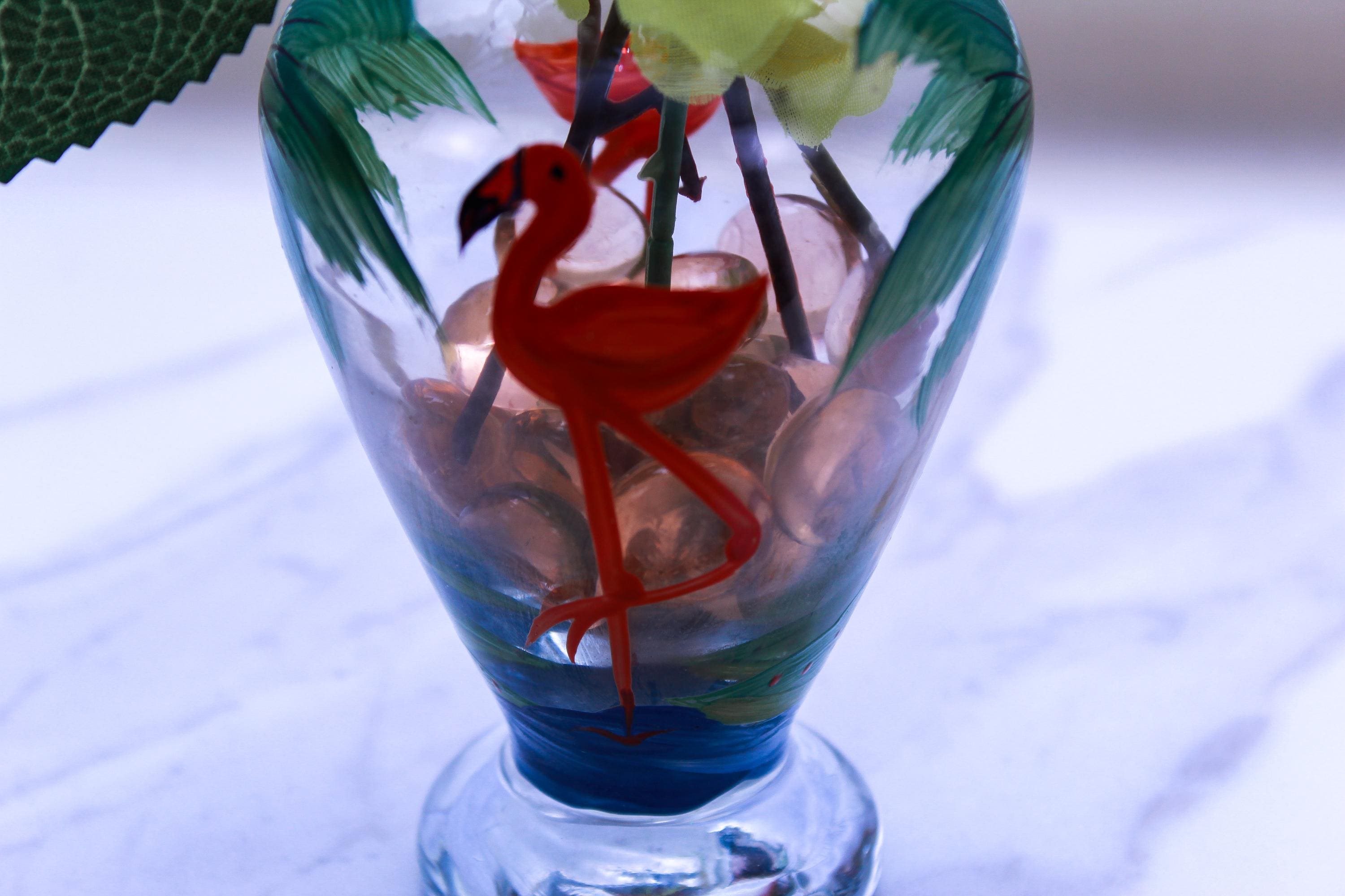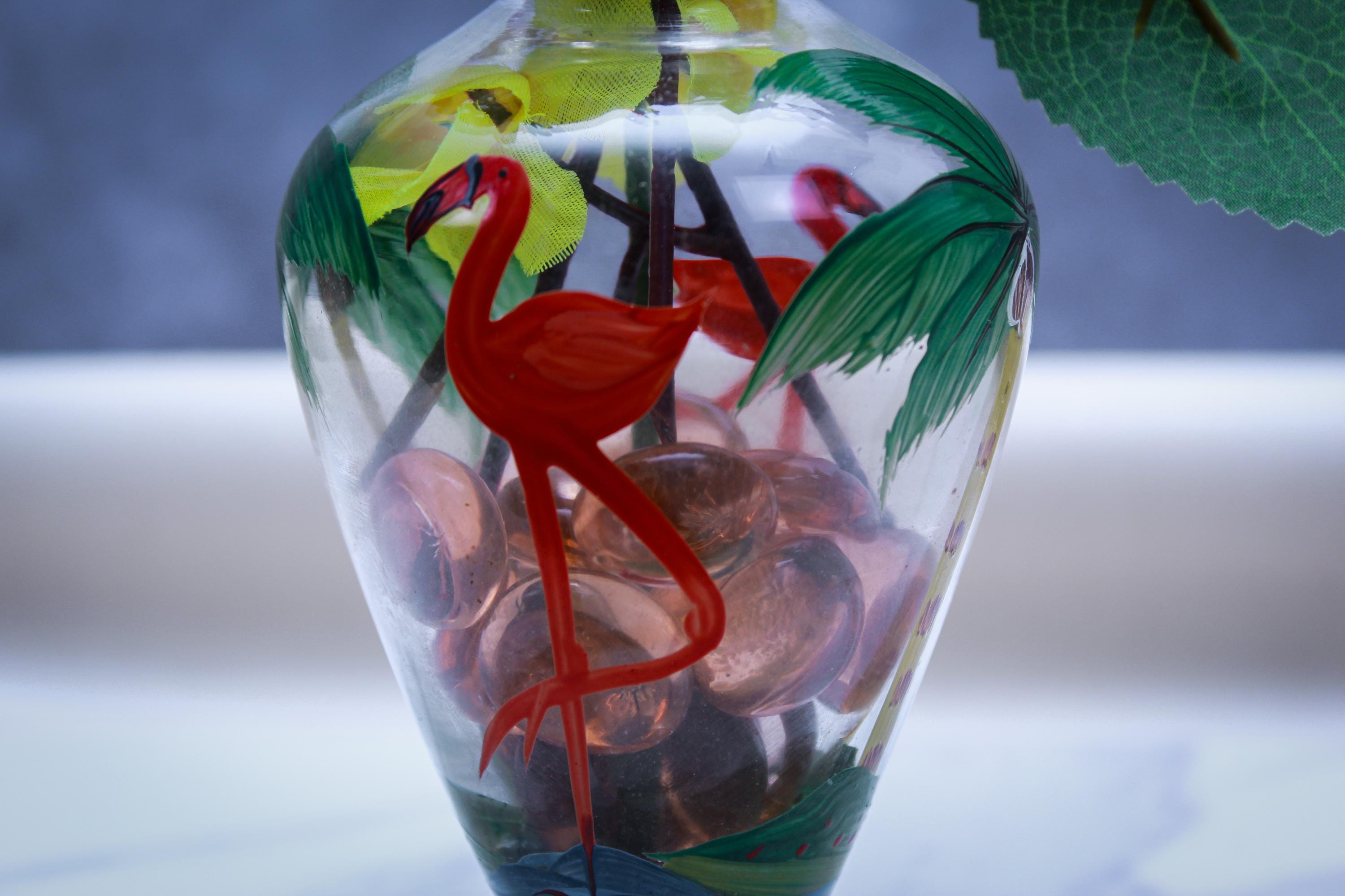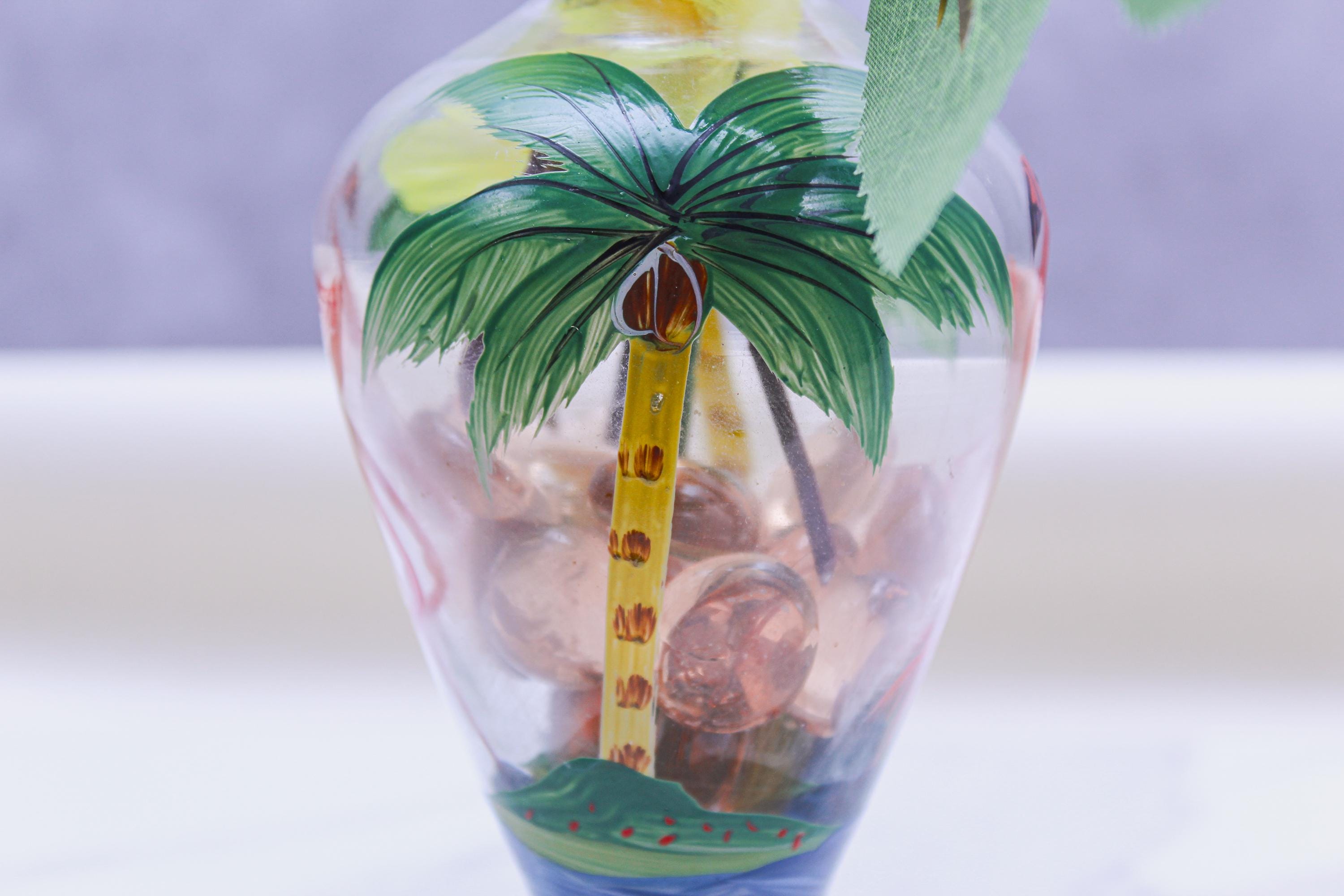 • Hand-painted glass vase (tropical flamingo + palm)