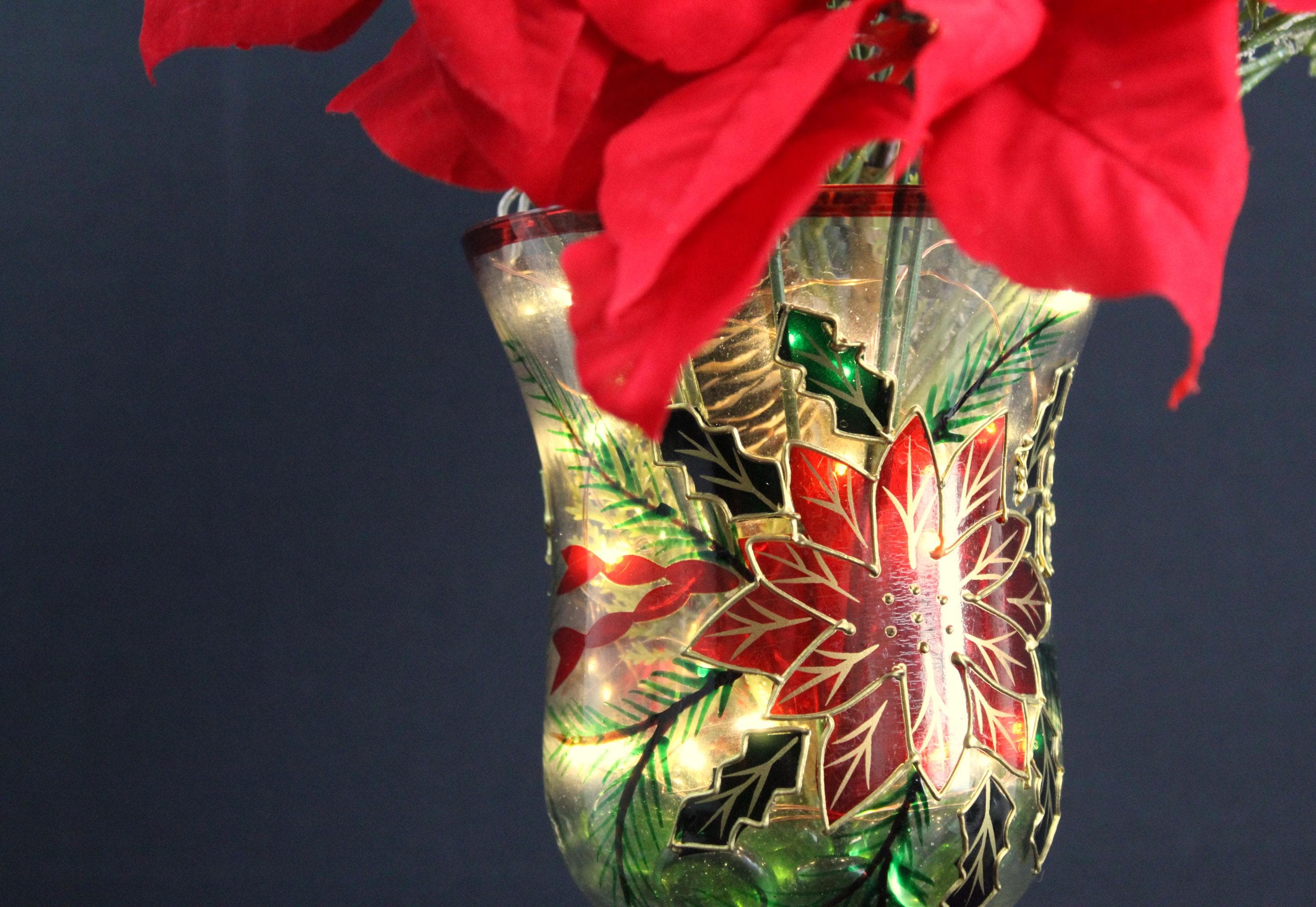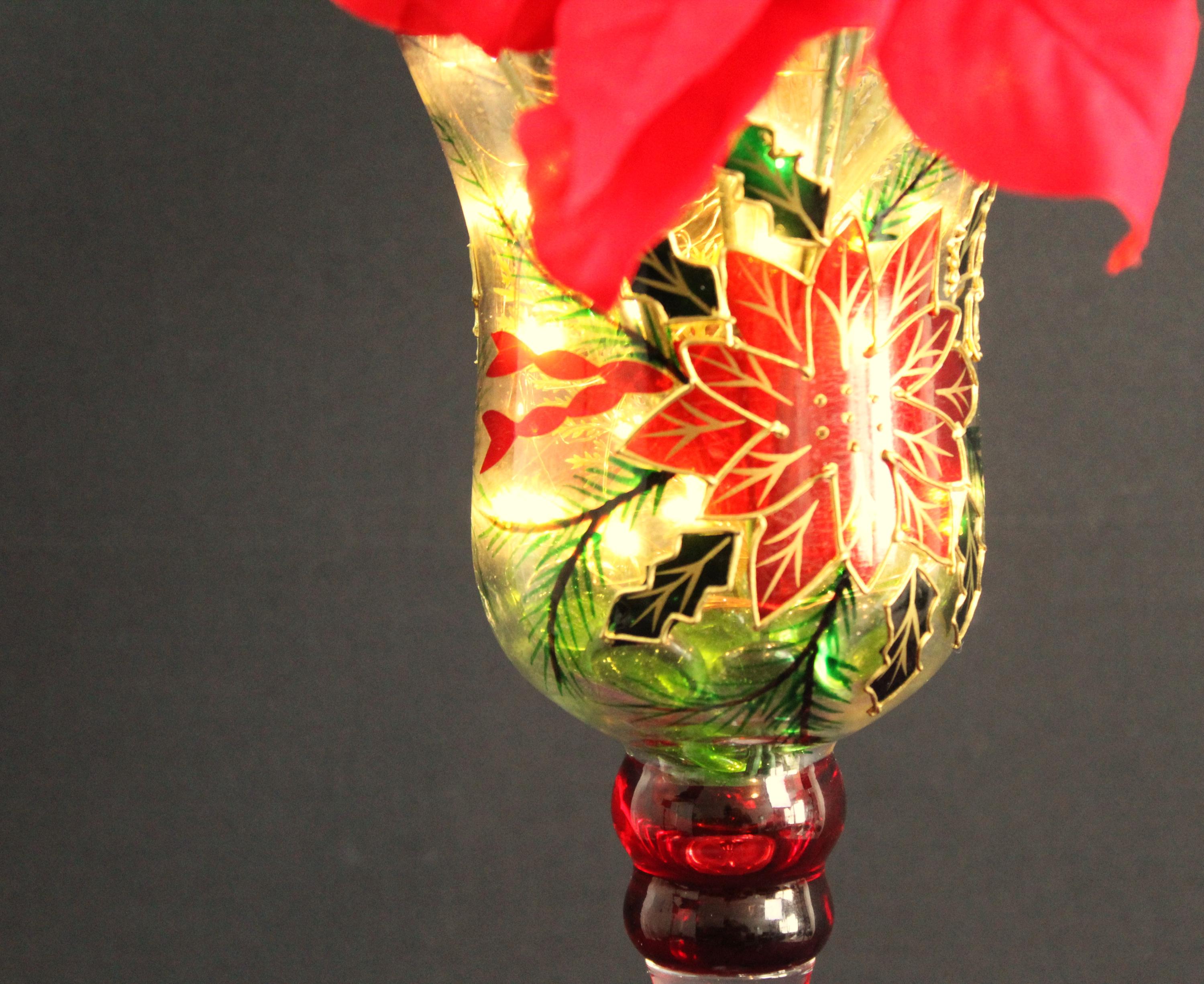 LED fairy lights nestled in a tall decorative wine glass