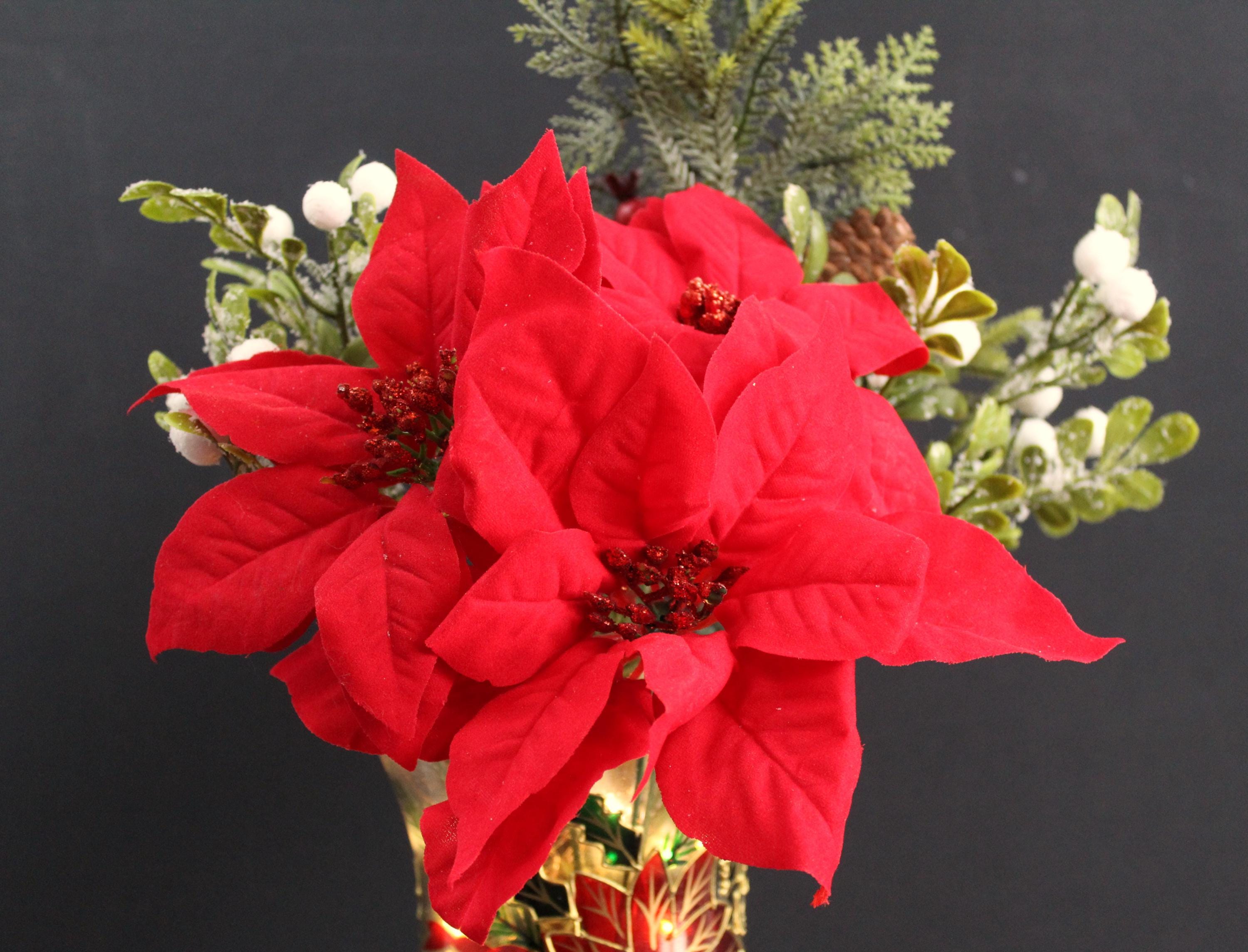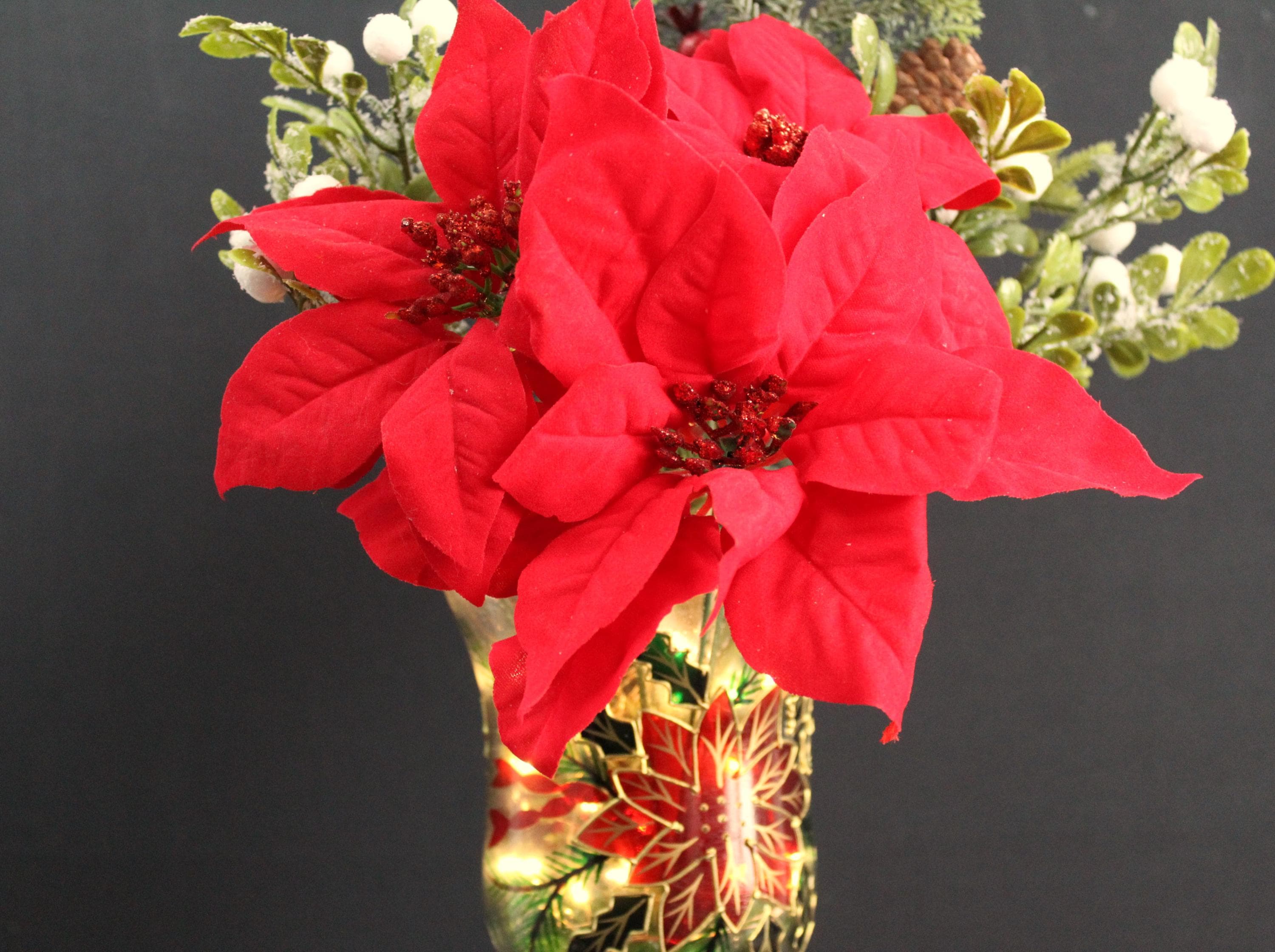 Perfect as a centerpiece for your dining table, coffee table, or mantel. The soft glow from the LED lights enhances the festive ambiance, making this arrangement an ideal holiday gift or décor item.