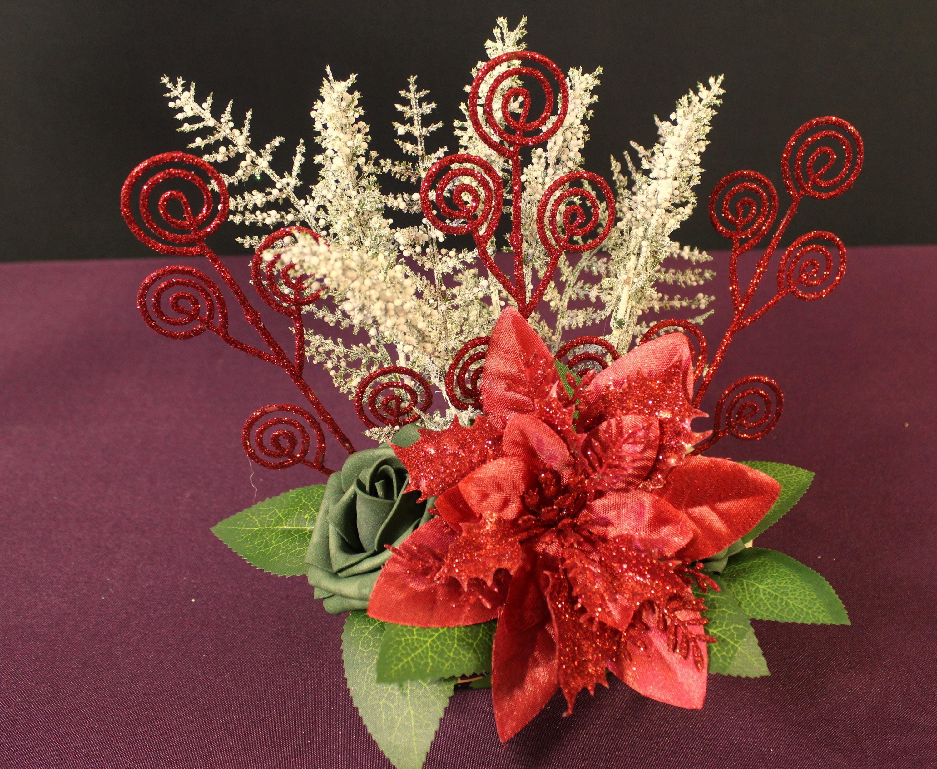 This festive floral display is crafted with high-quality, lifelike materials to ensure it brings seasonal charm to your home year after year. Its whimsical design makes it an ideal addition to any Christmas setting or a thoughtful gift for someone special.