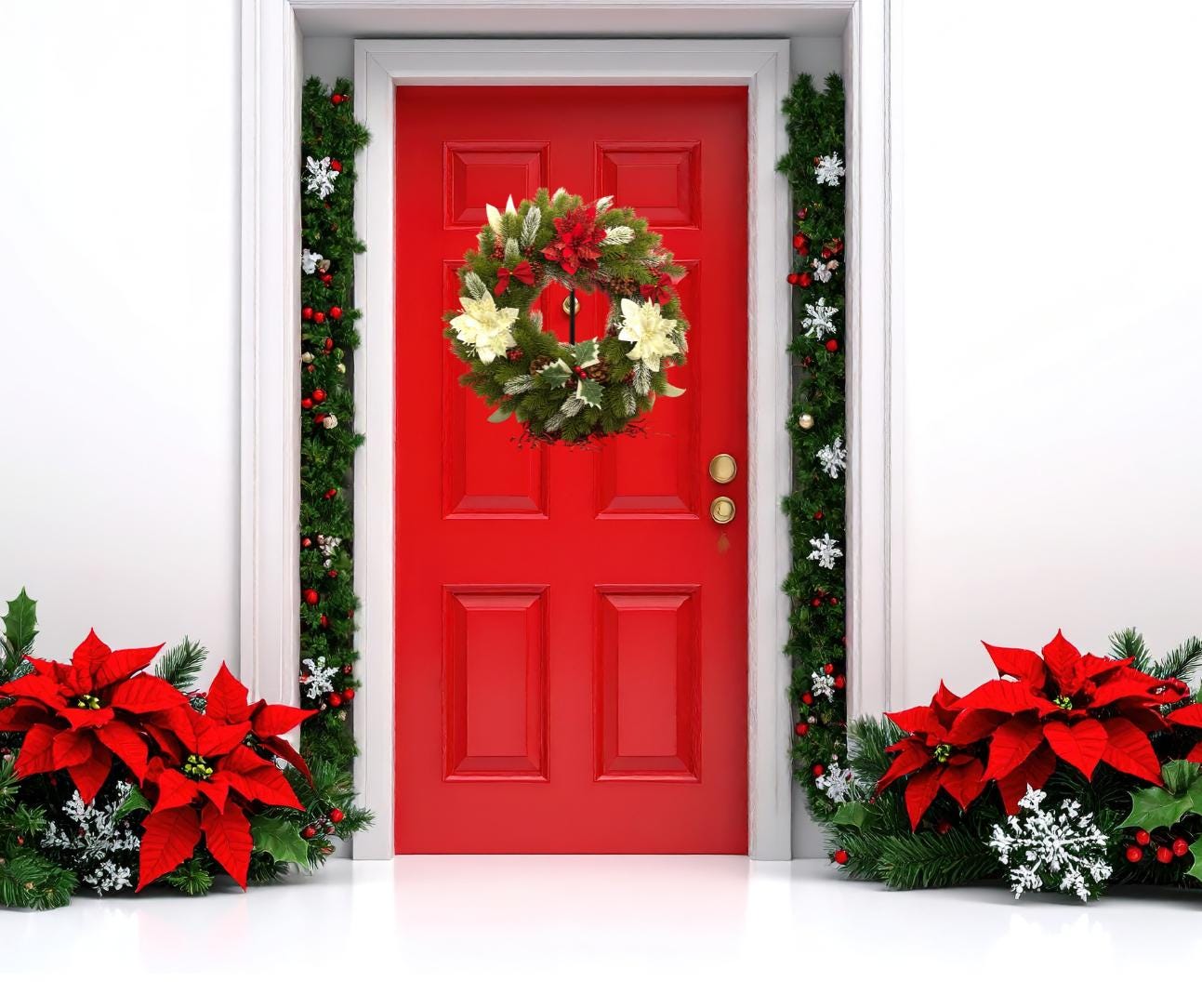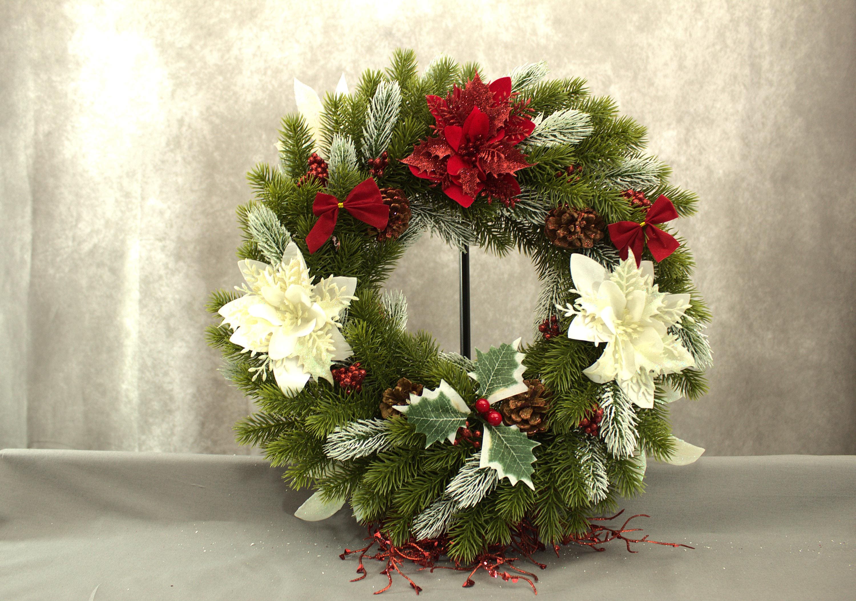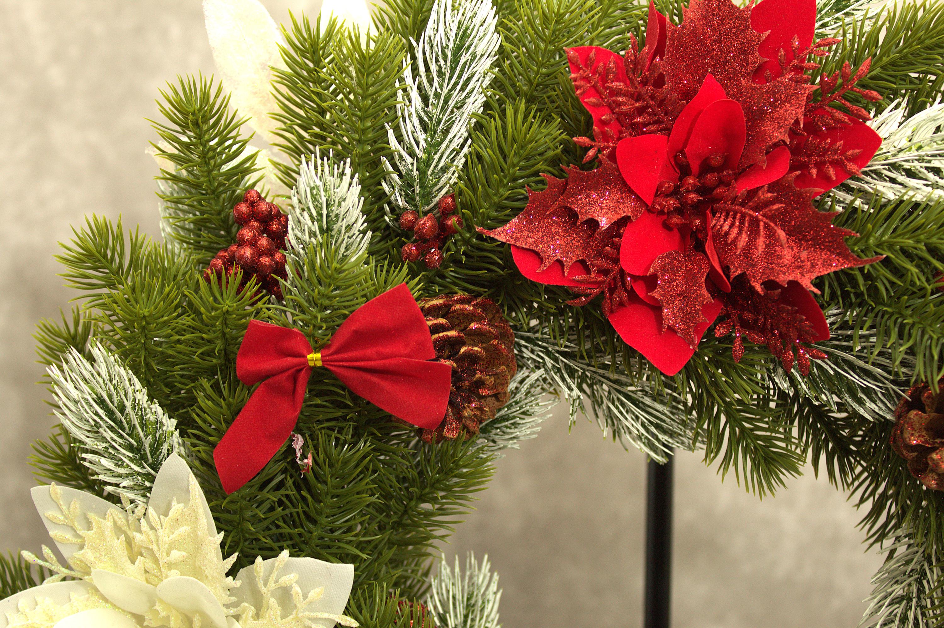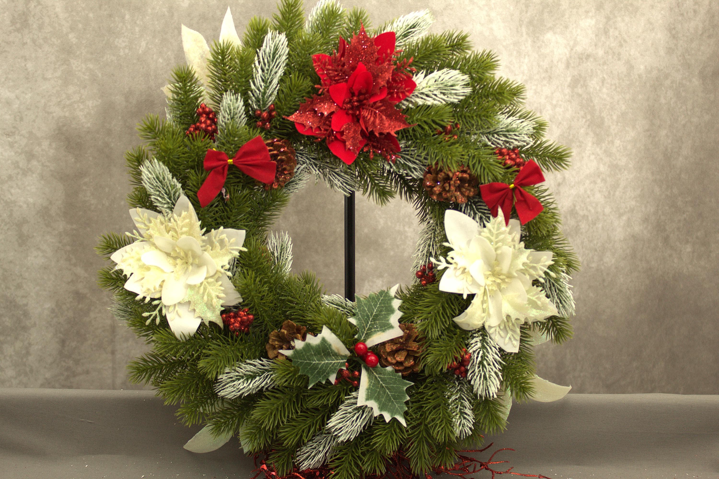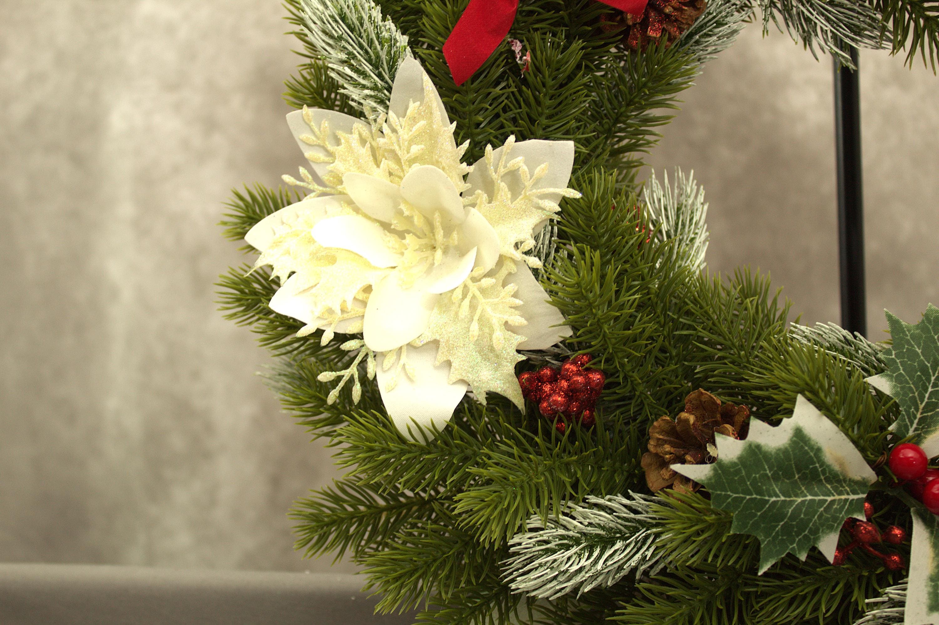 This stunning handcrafted Christmas wreath is the perfect addition to your festive home décor. Designed with attention to detail, it combines:
