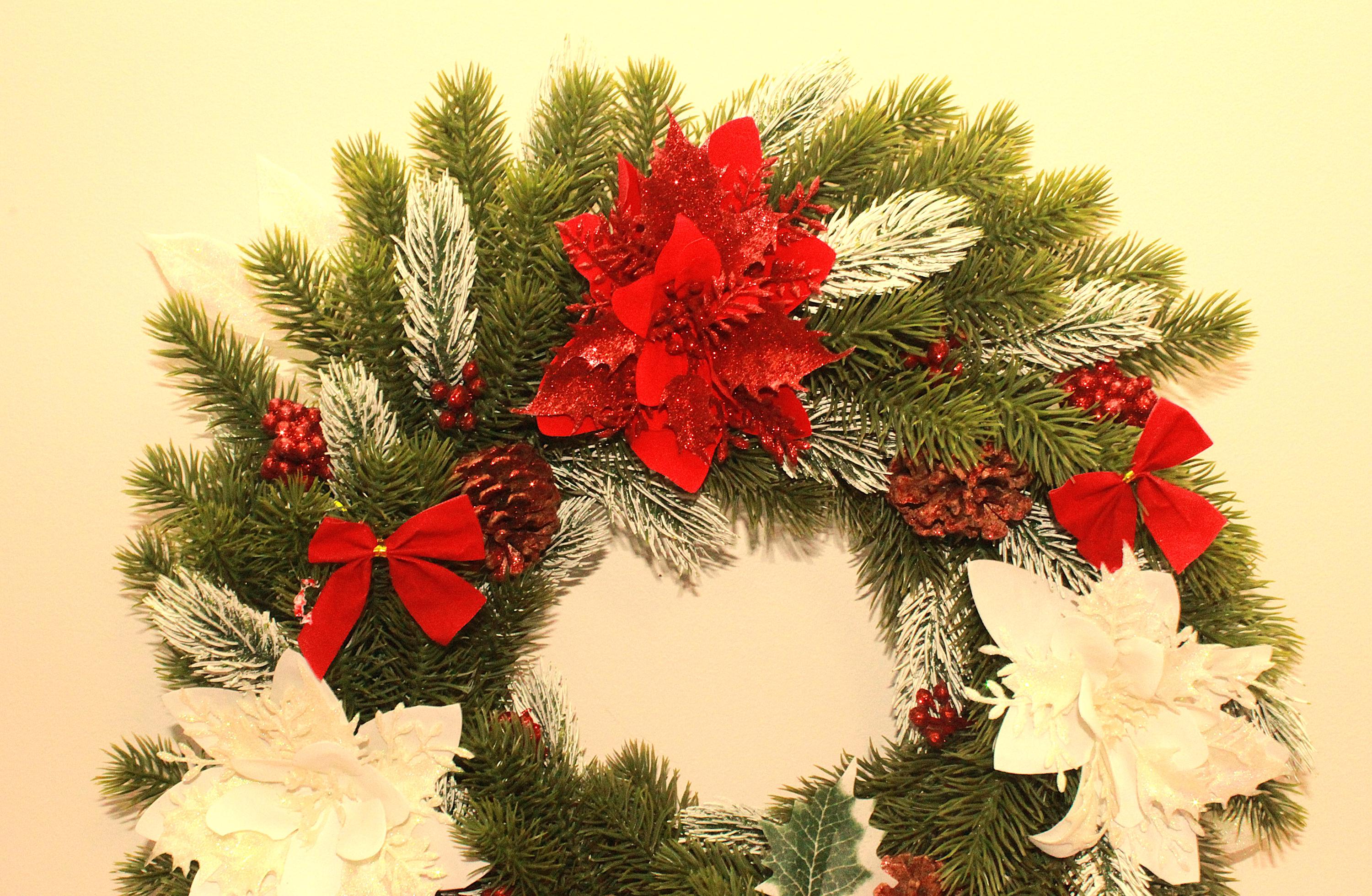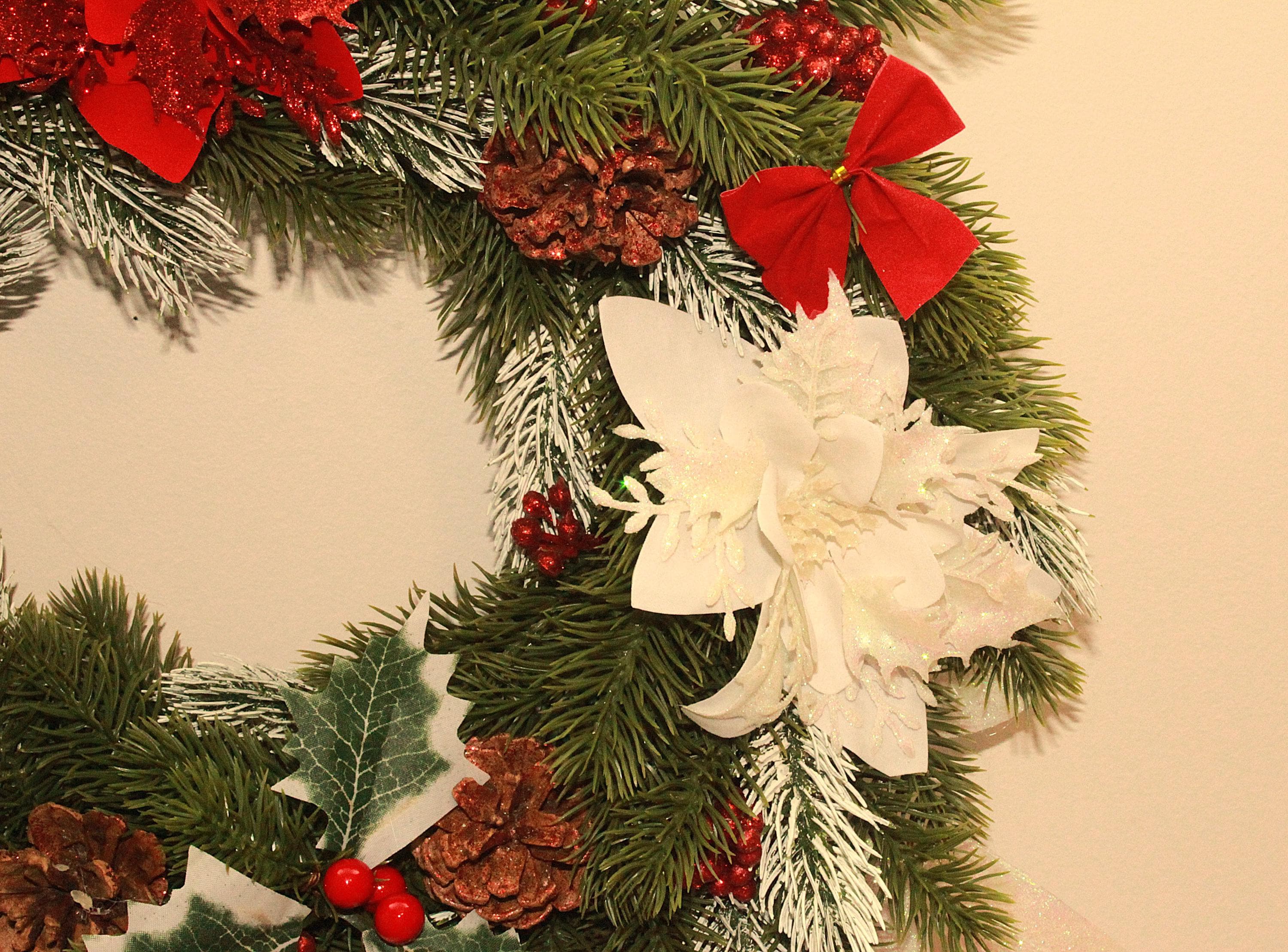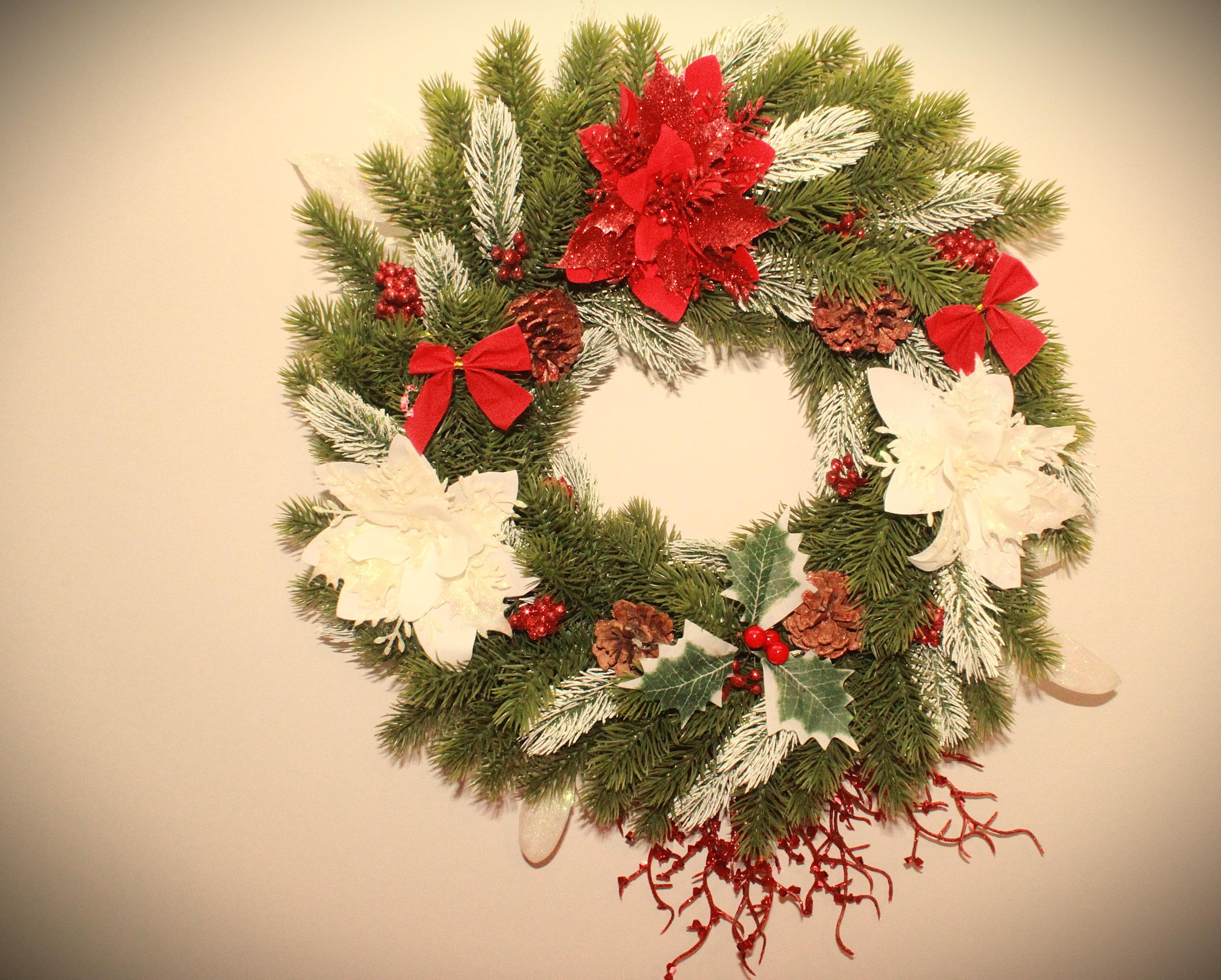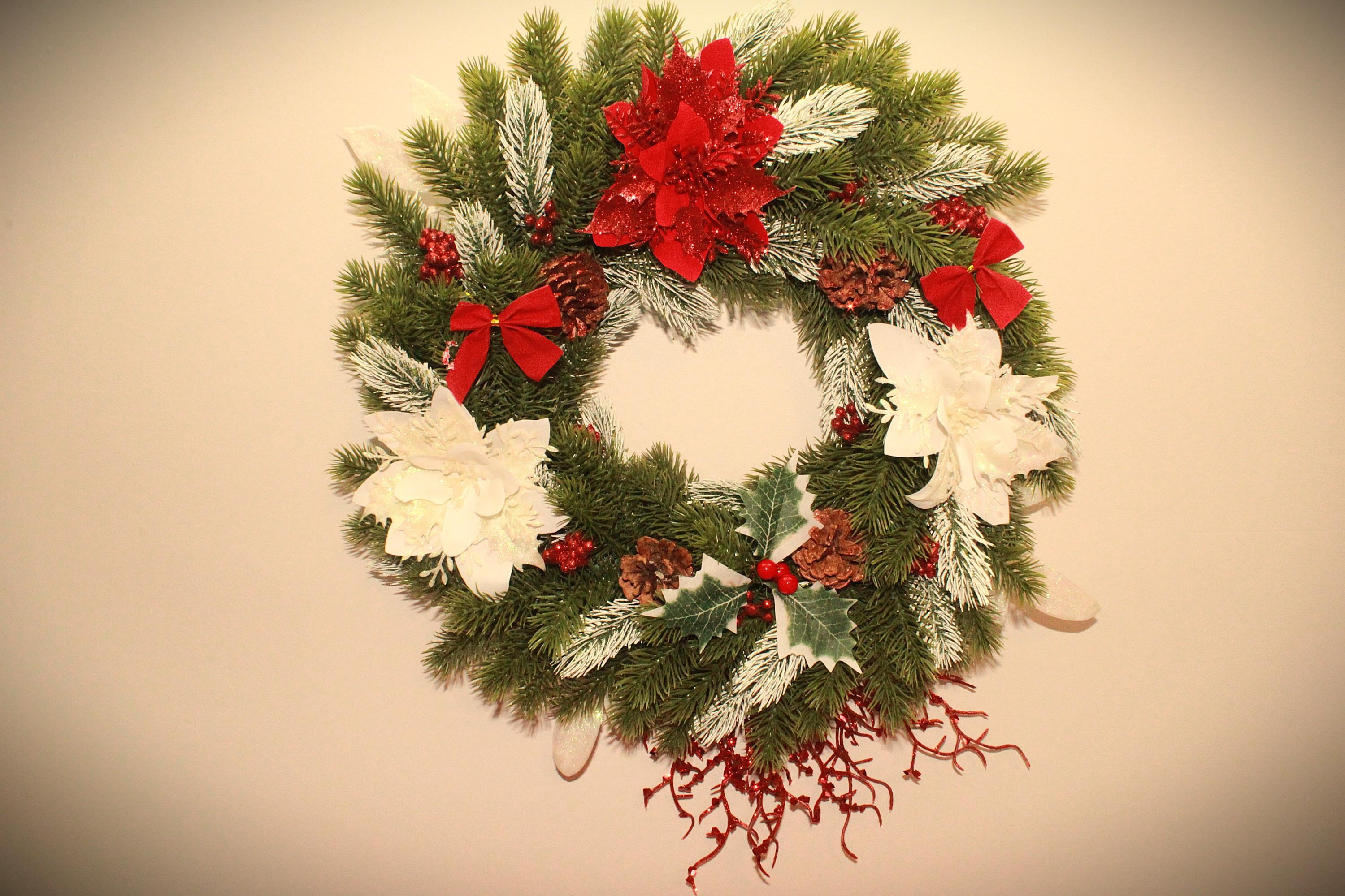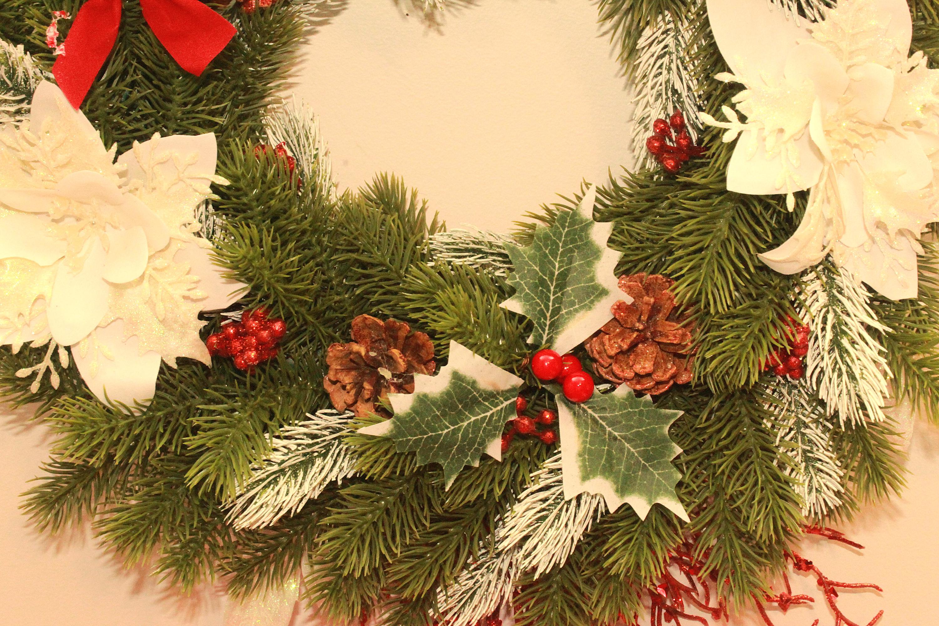 This stunning handcrafted Christmas wreath is the perfect addition to your festive home décor. Designed with attention to detail, it combines: