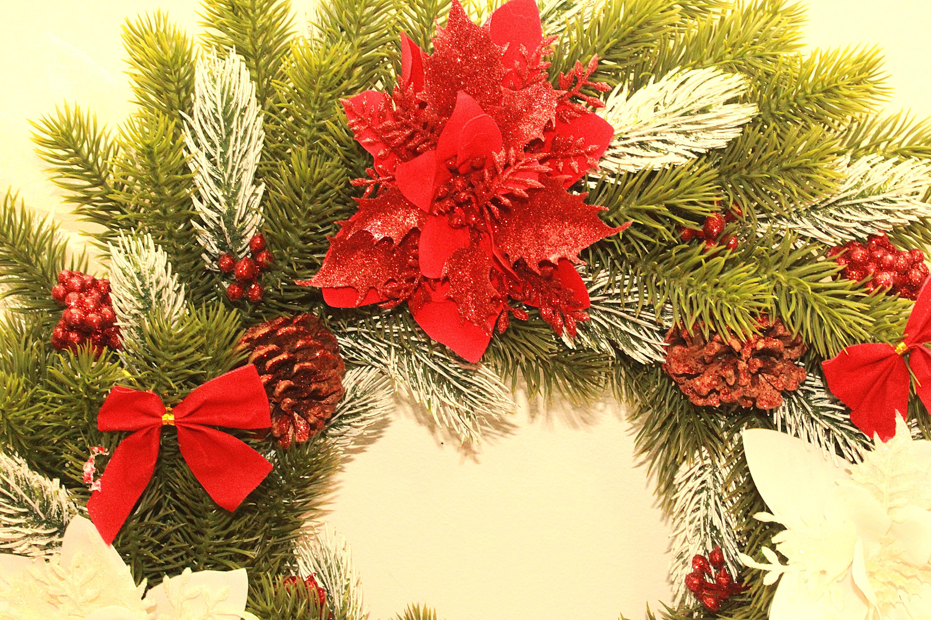 Vibrant red and white poinsettias for a touch of holiday cheer.