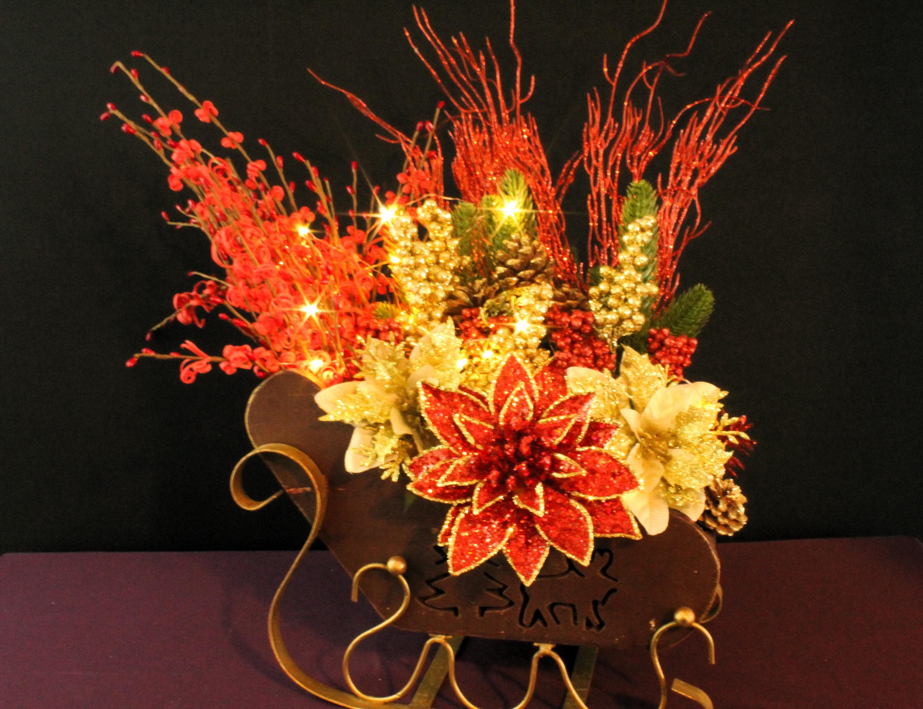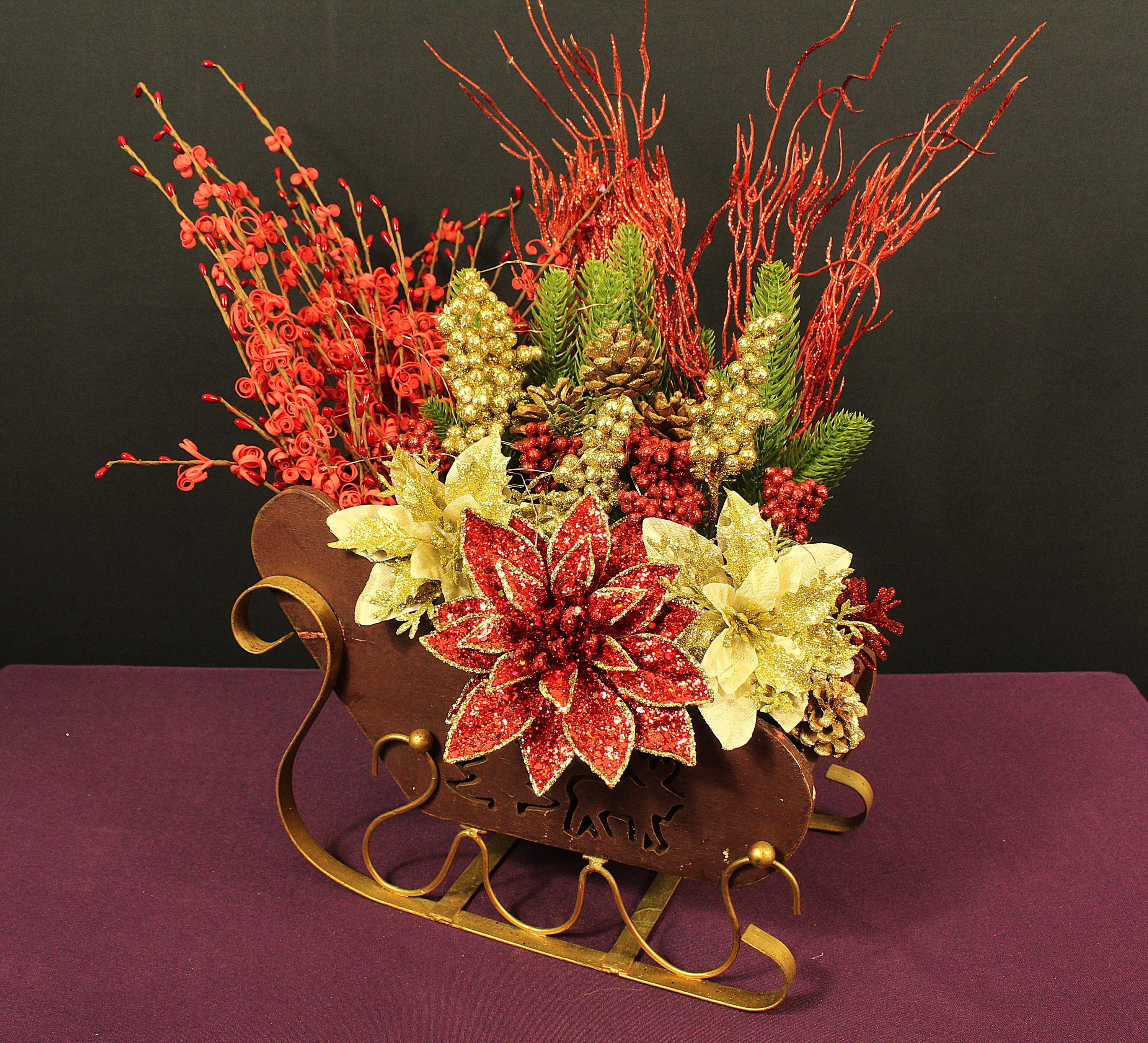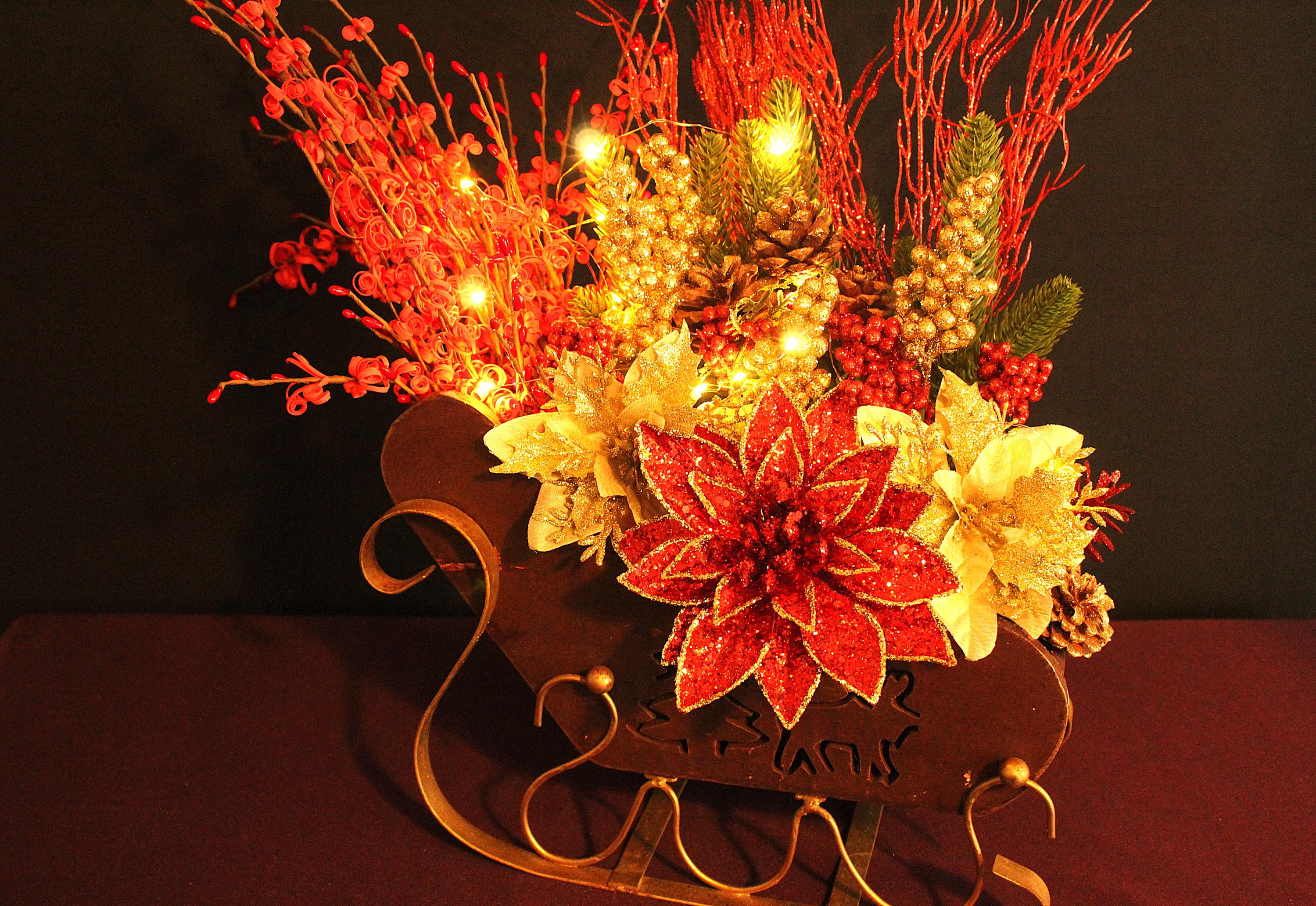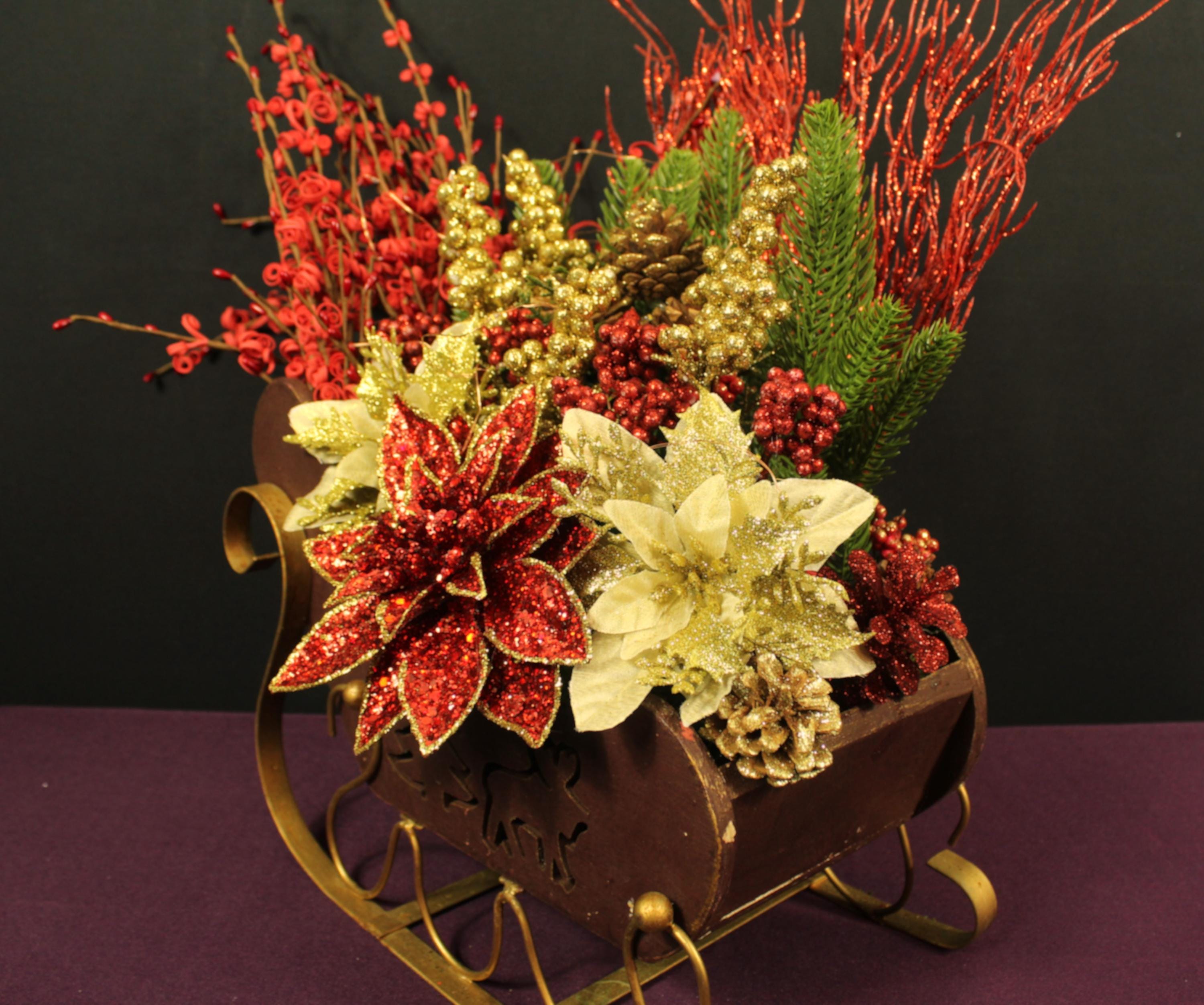 Transform your holiday table with this stunning Faux Flower Sleigh Centerpiece! Perfect for Christmas gatherings or as a festive gift, this handcrafted masterpiece combines elegance and sparkle to bring the holiday spirit to any space.