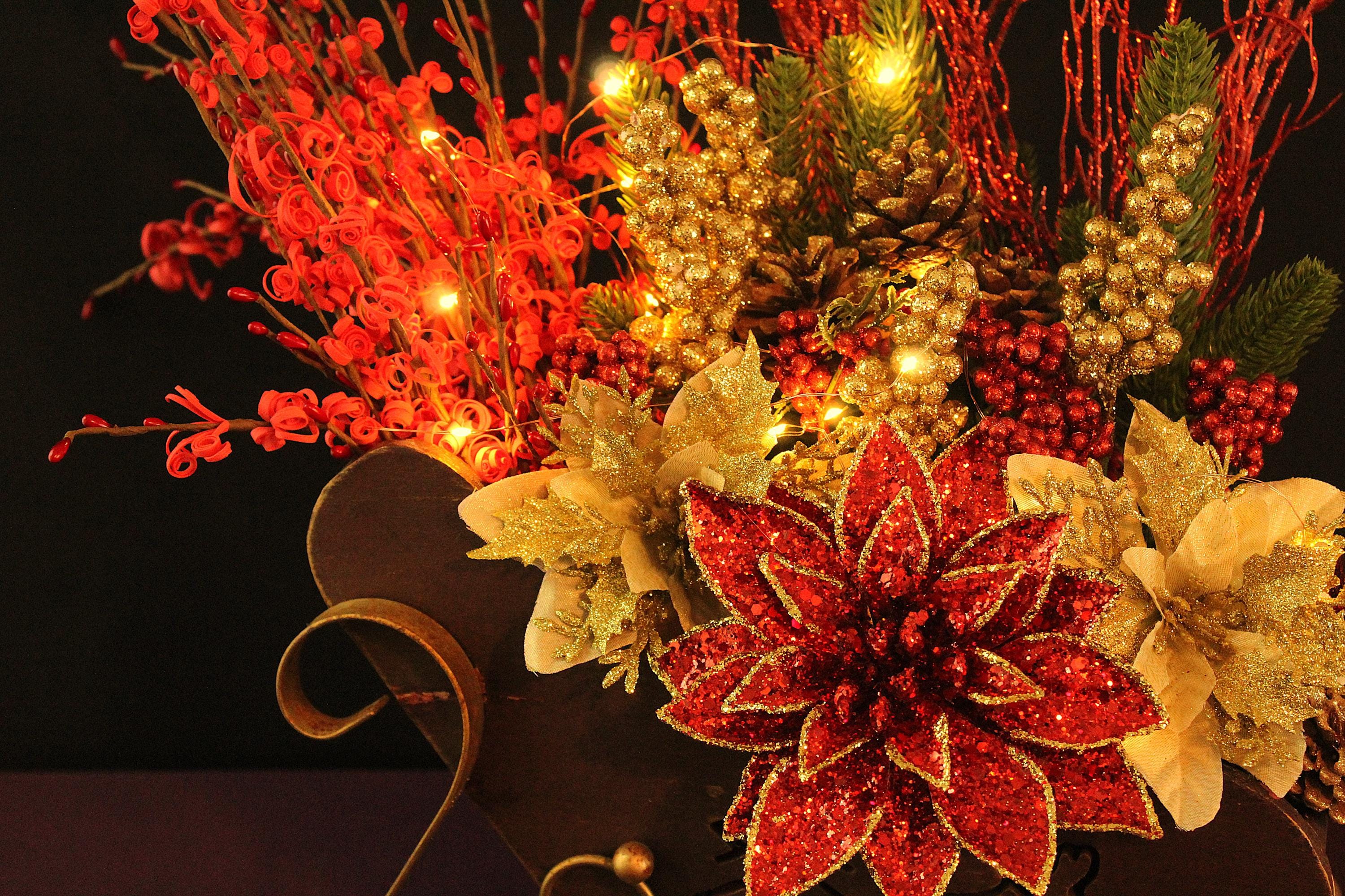 Lush Red & Gold Poinsettias: Symbolizing the magic of Christmas.