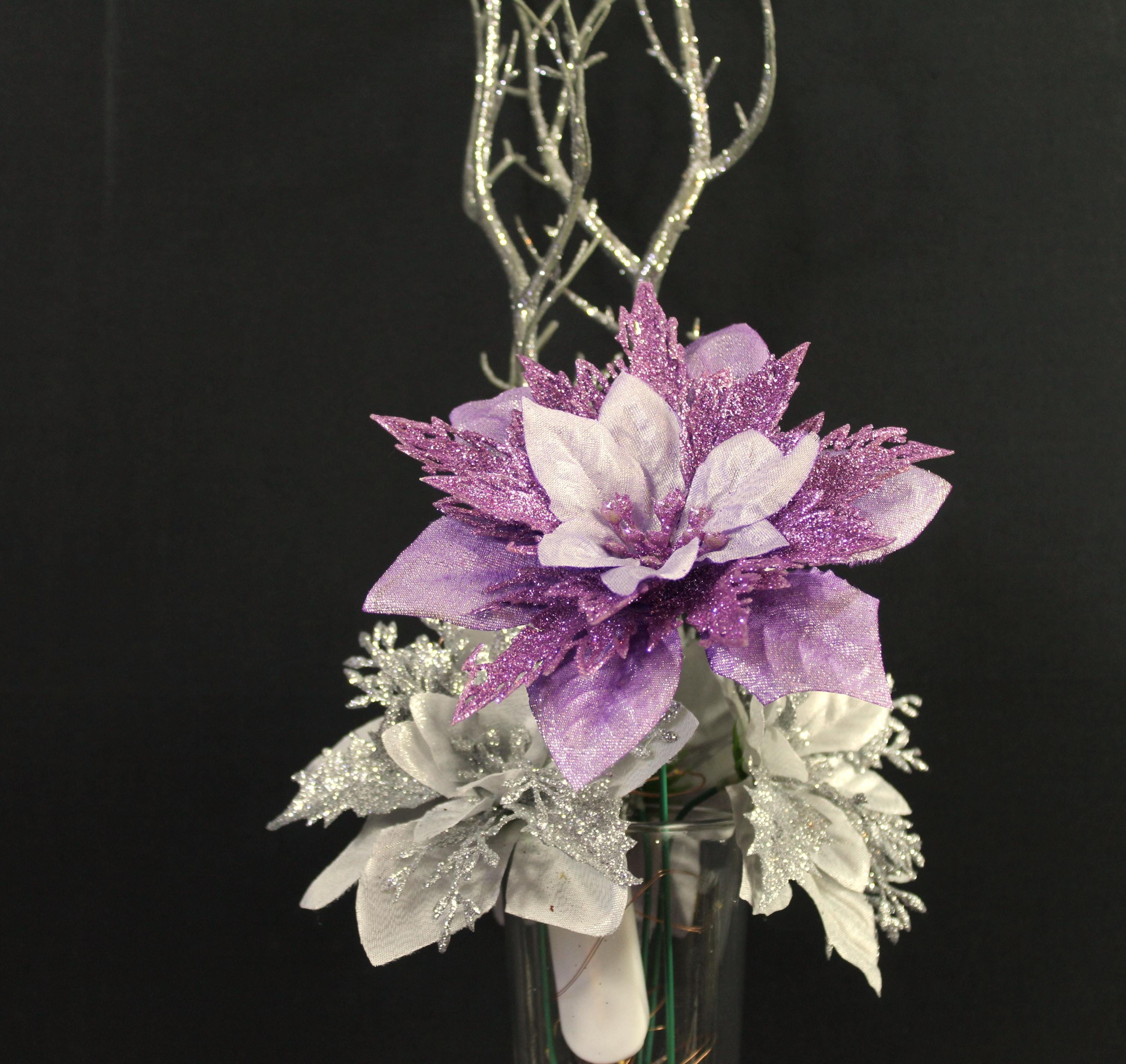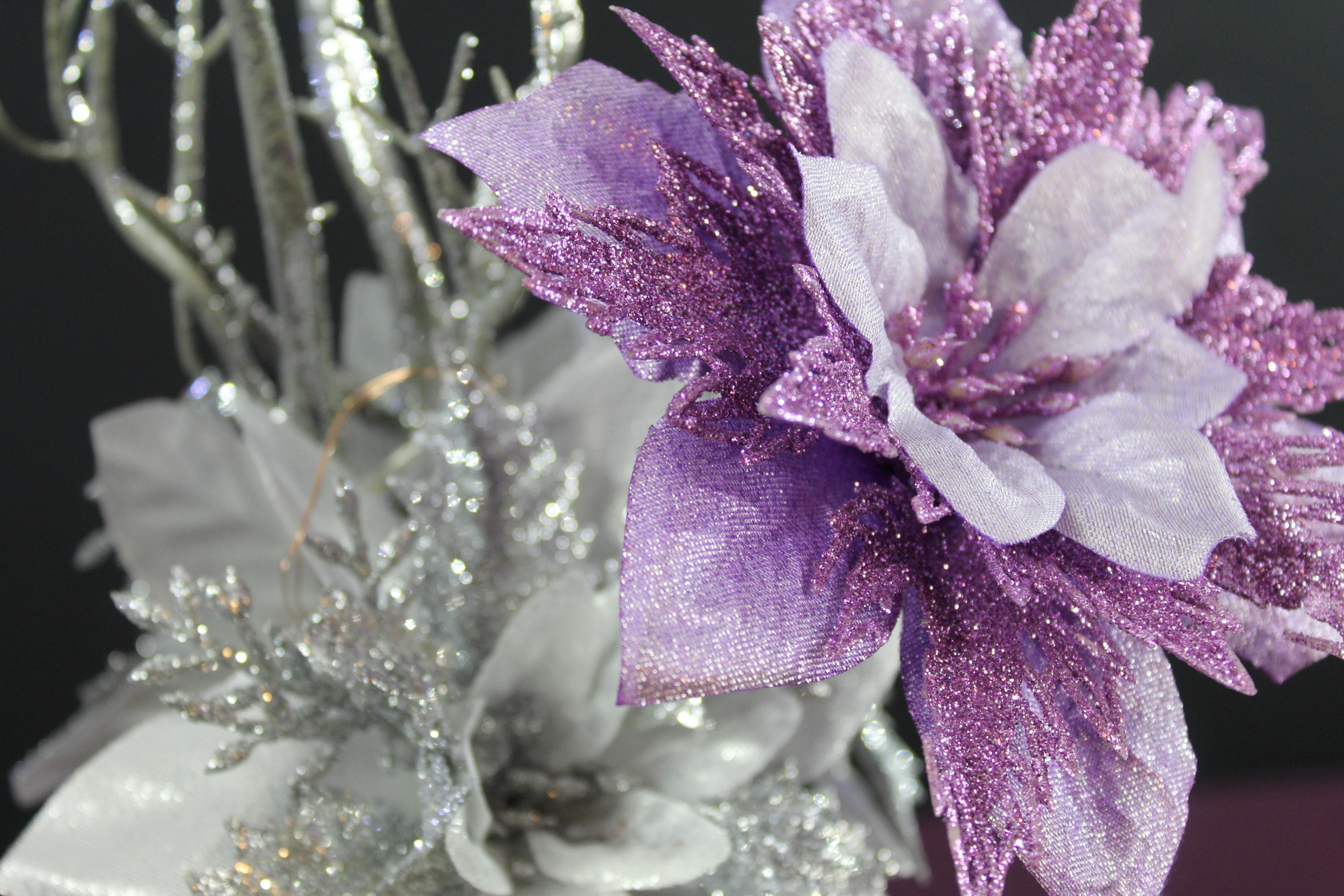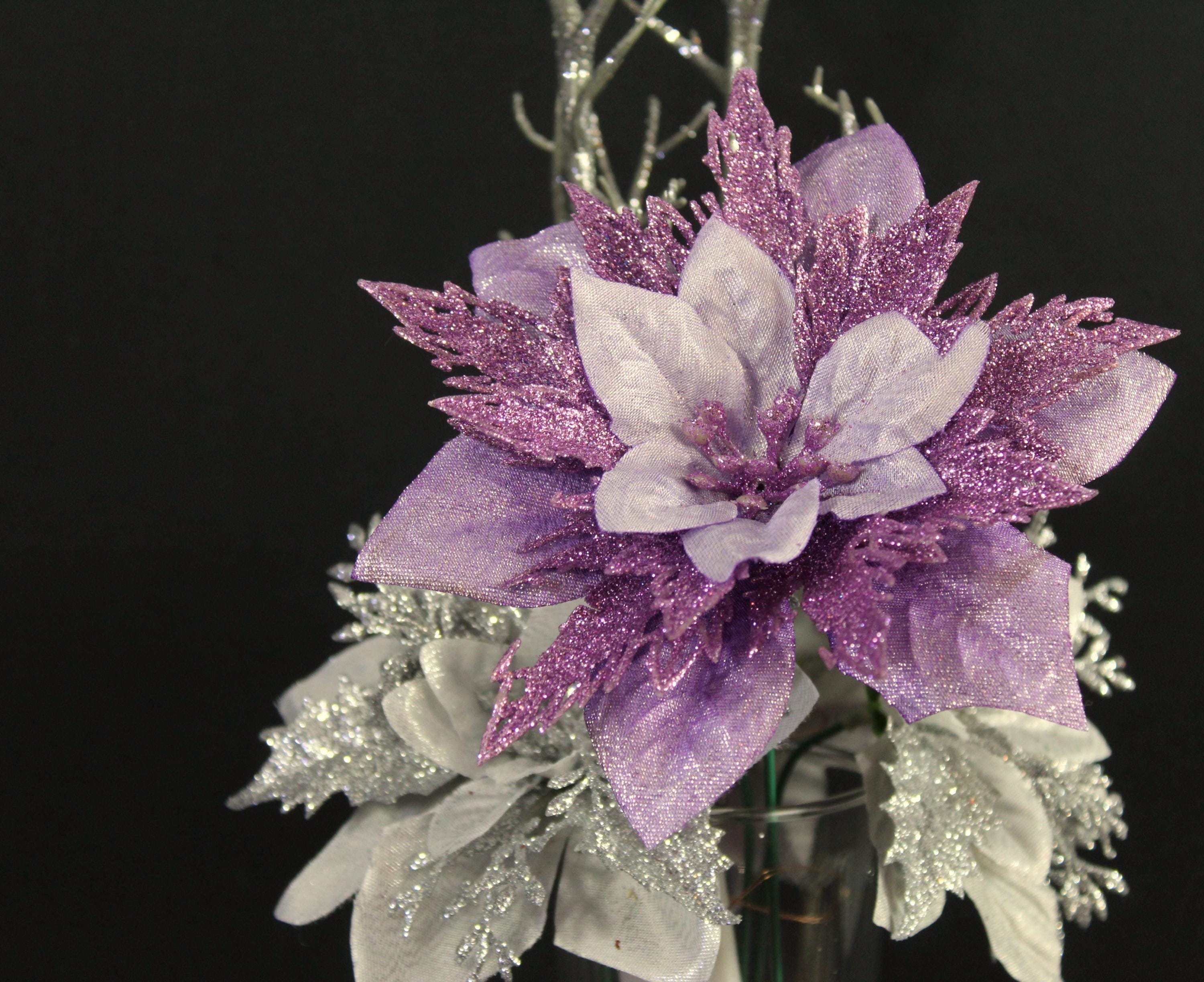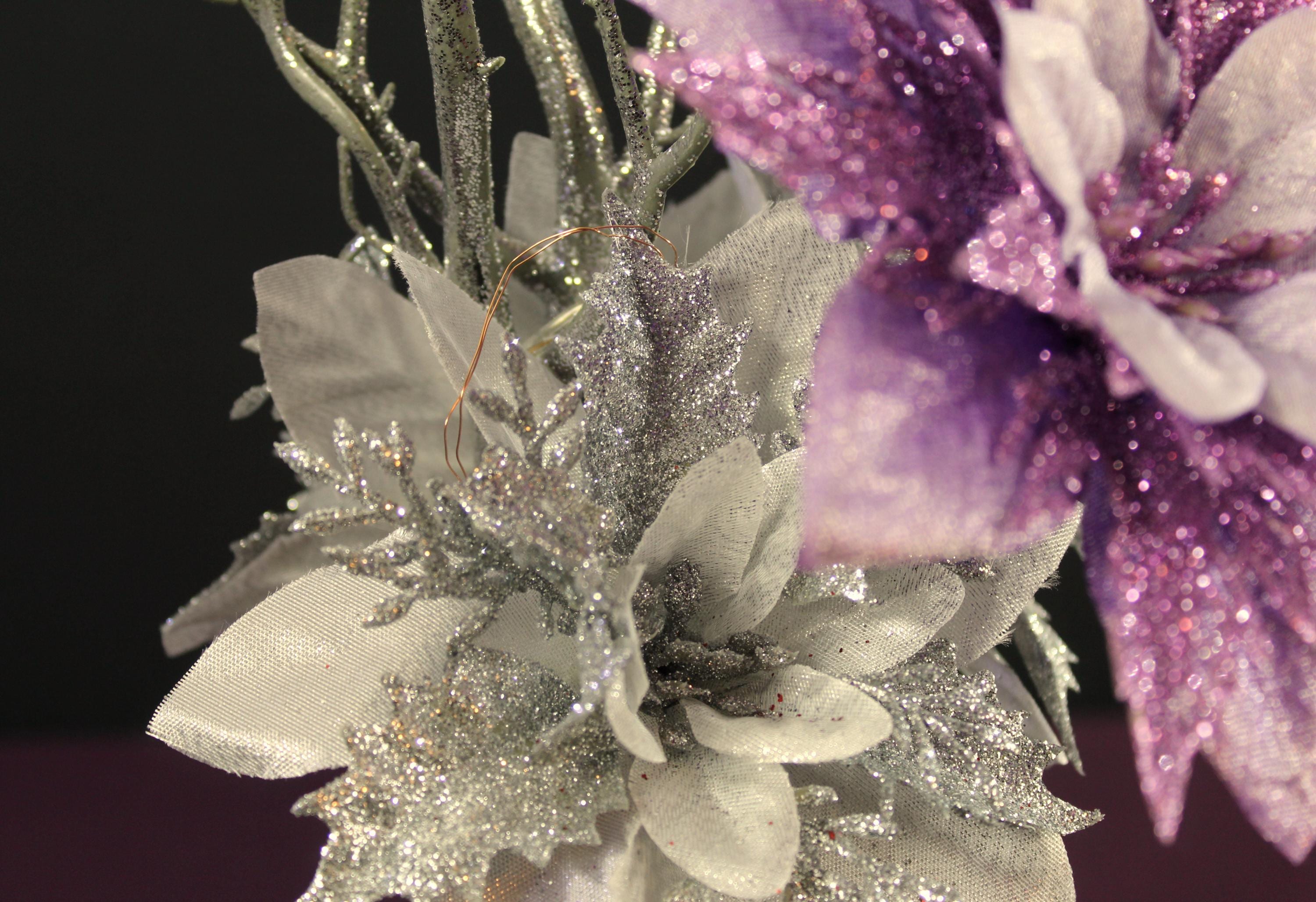 - Realistic Design: White and purple poinsettias mimic fresh blooms with stunning detail.