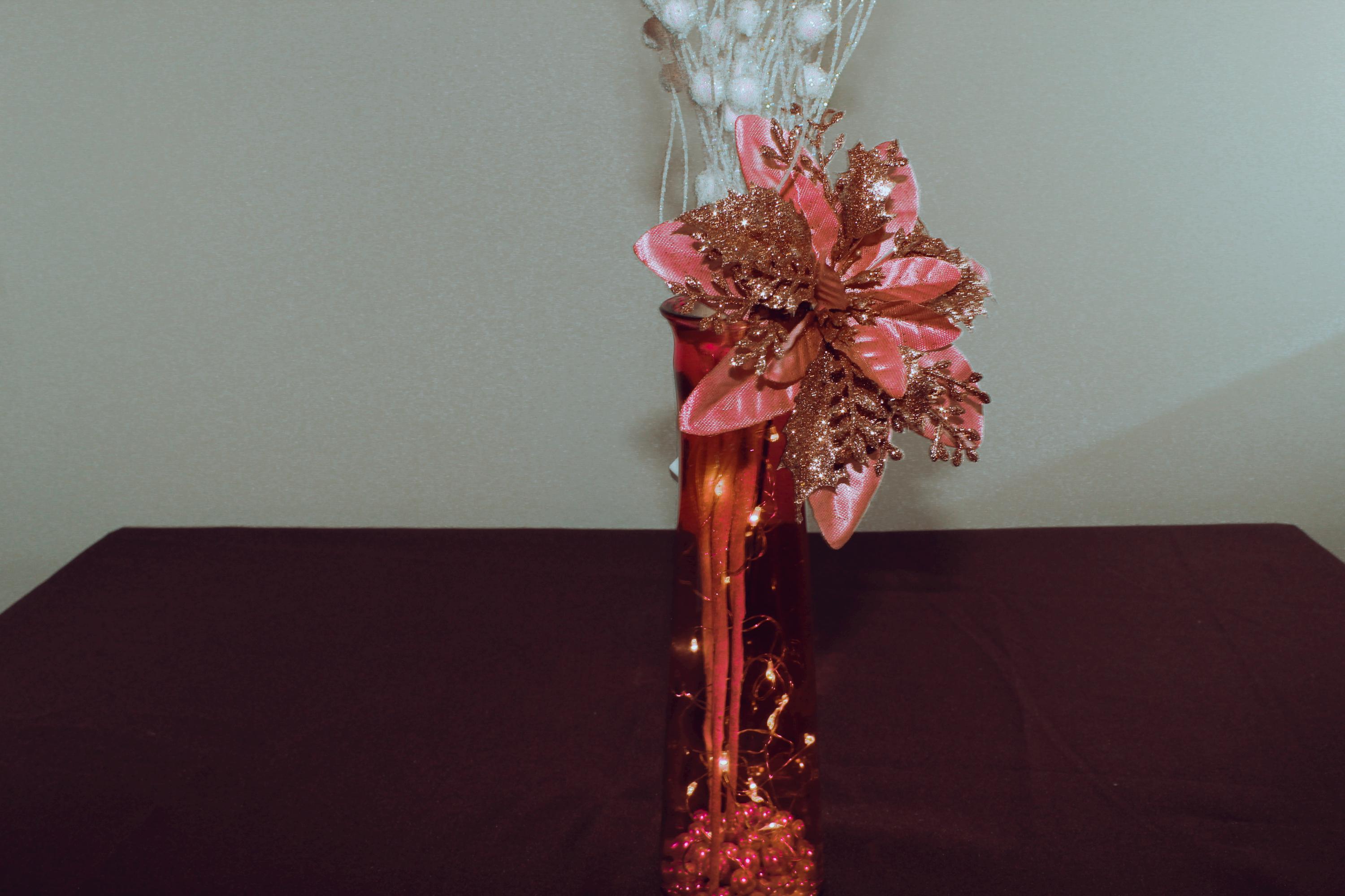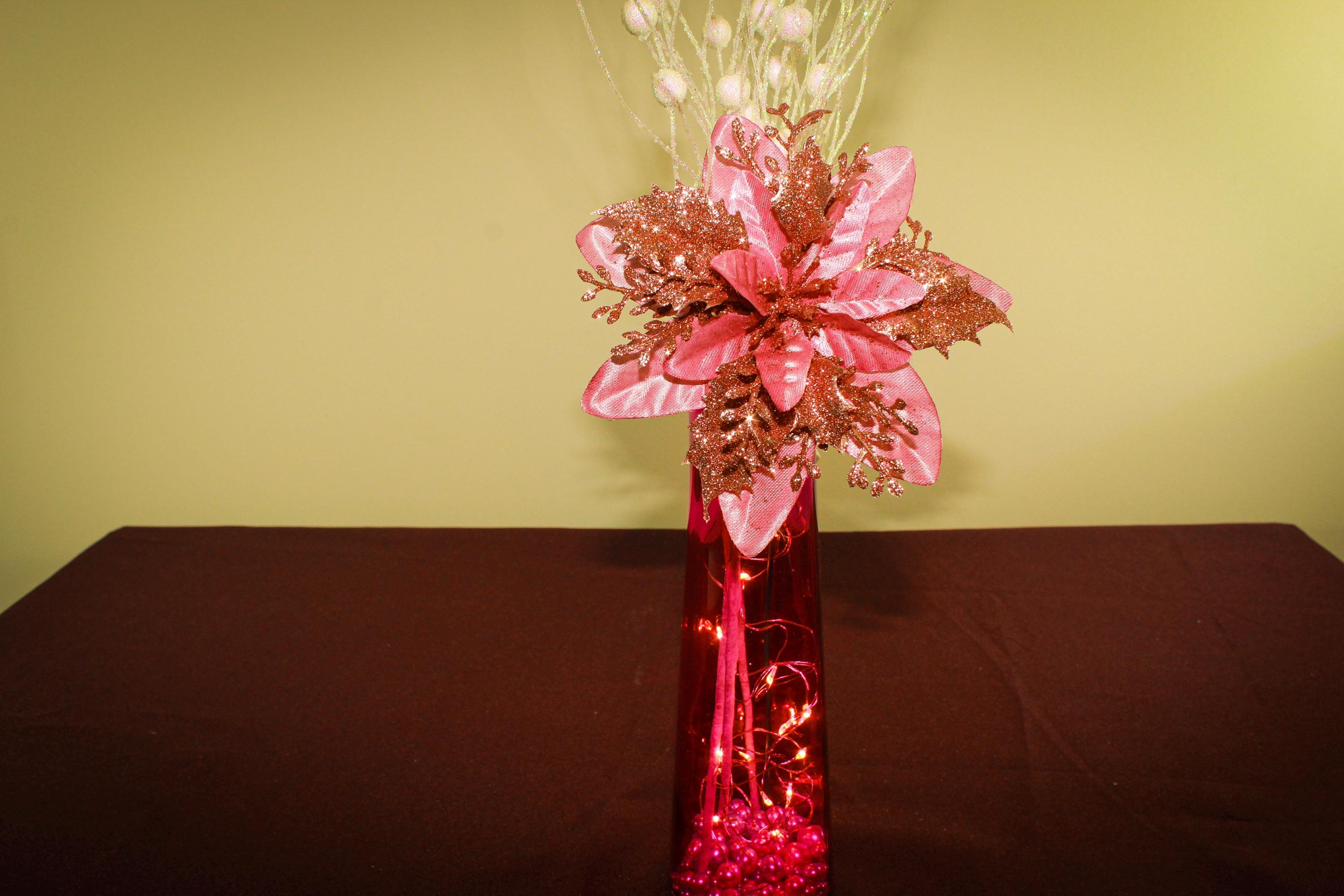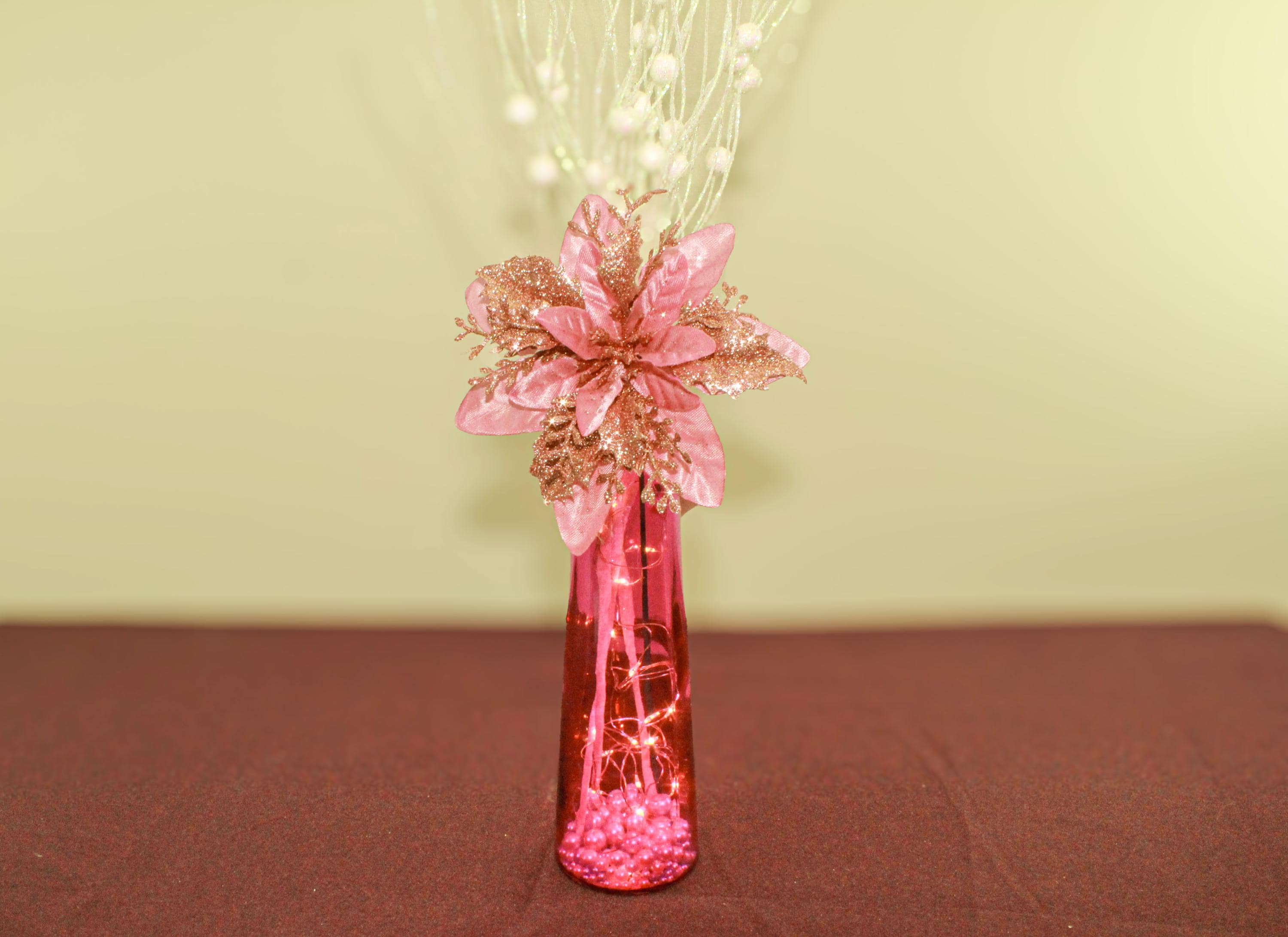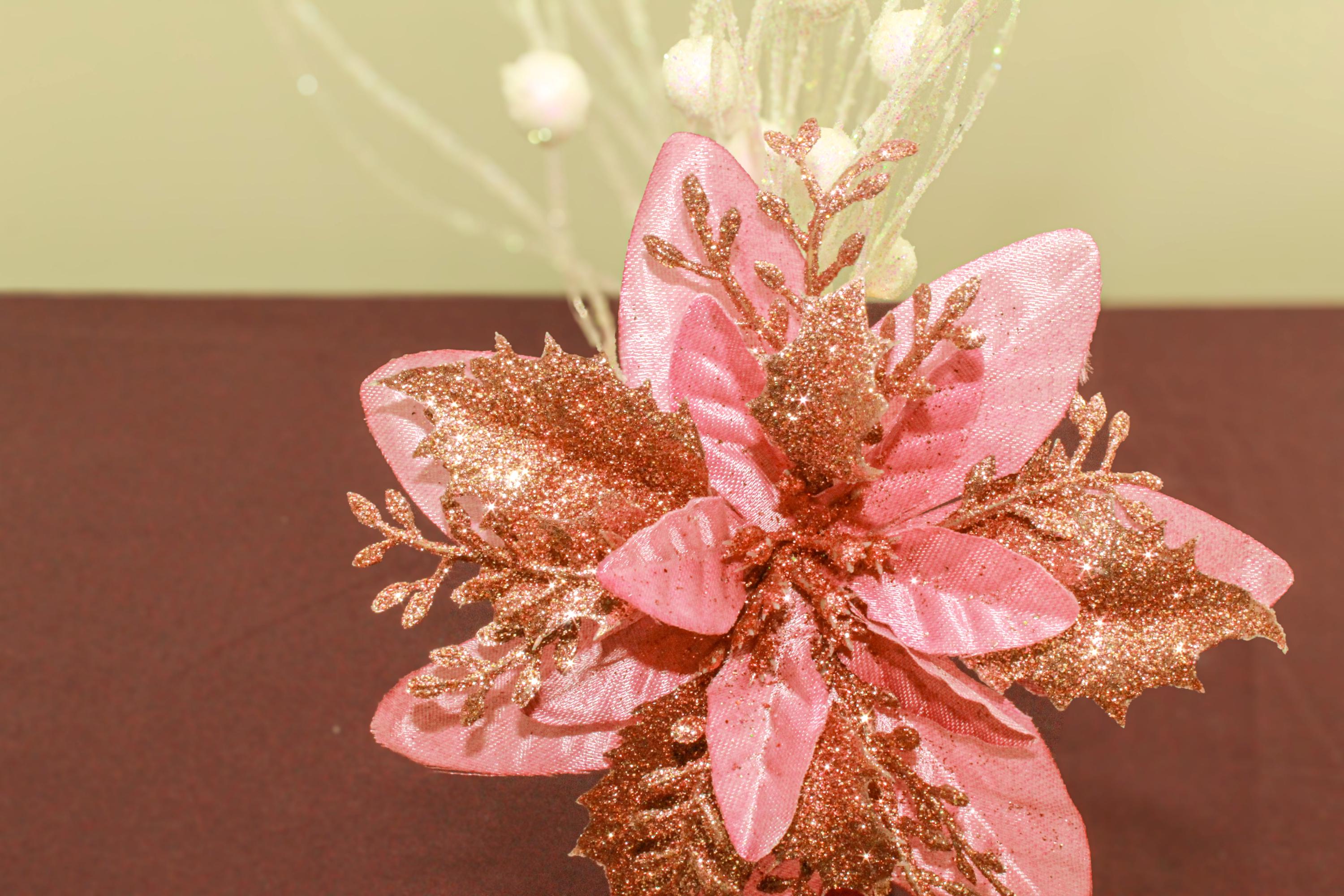 A gorgeous pink poinsettia with shimmering glitter accents for a festive glow.