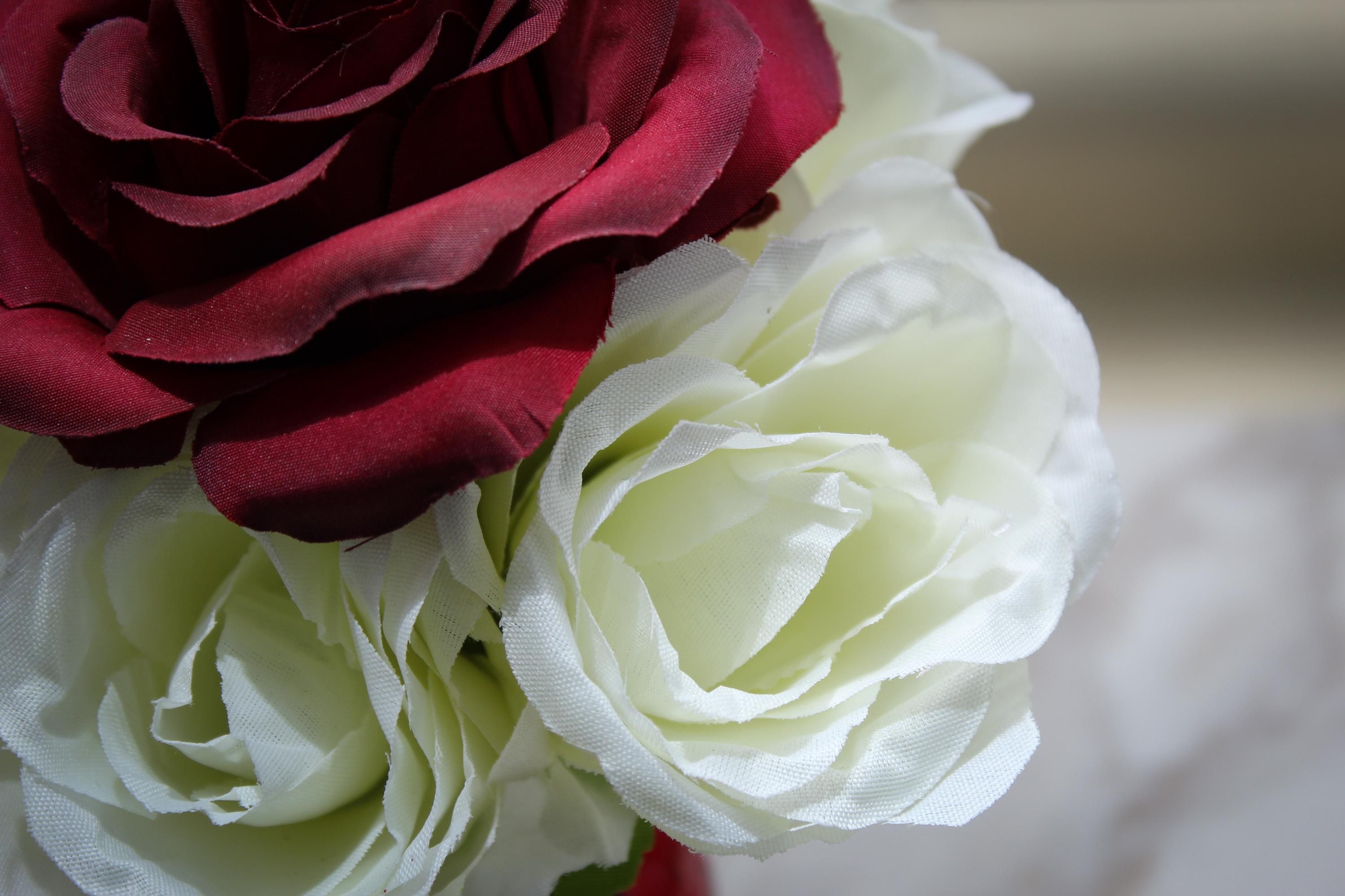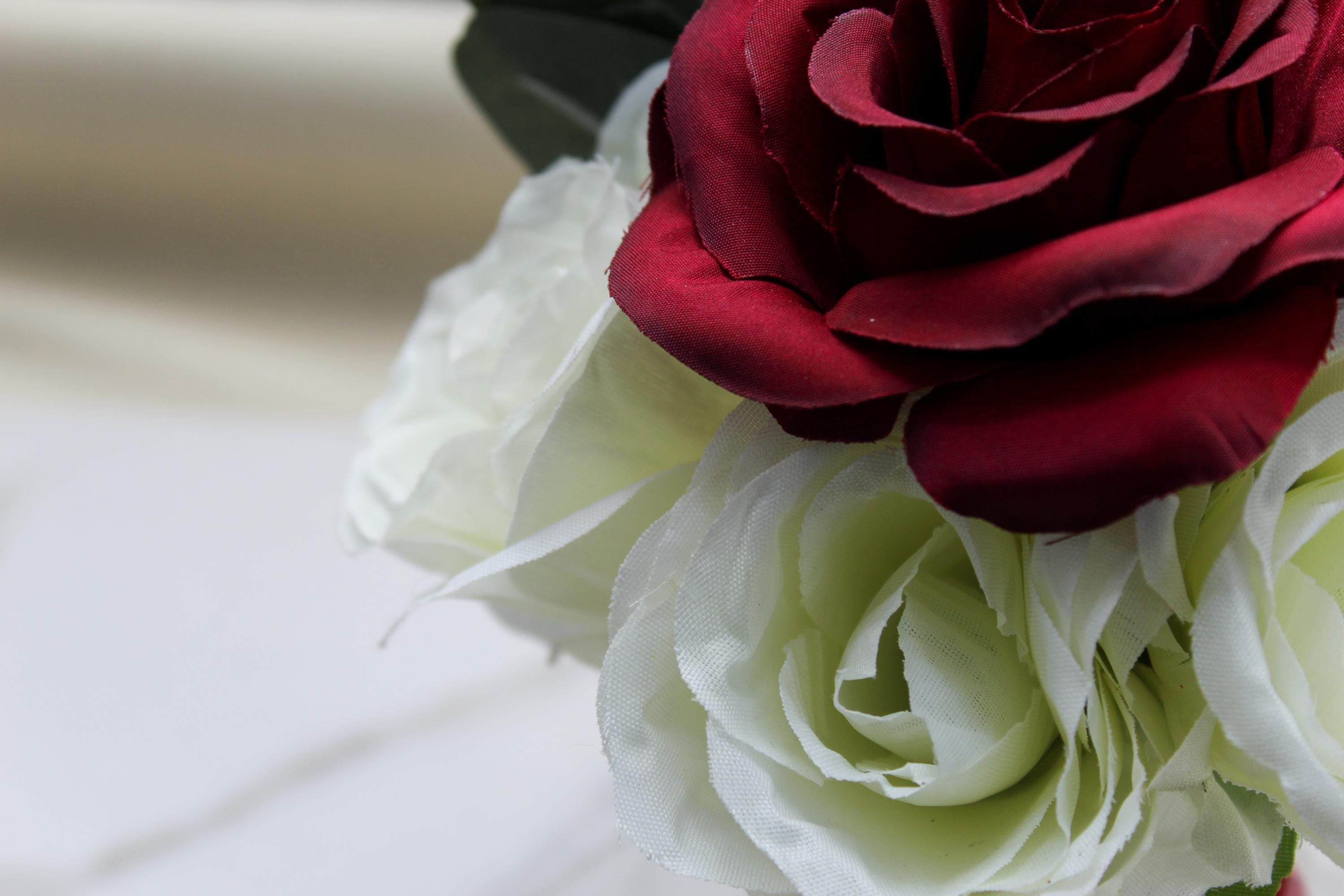 Flowers Included: Red roses, white roses, and eucalyptus sprigs.