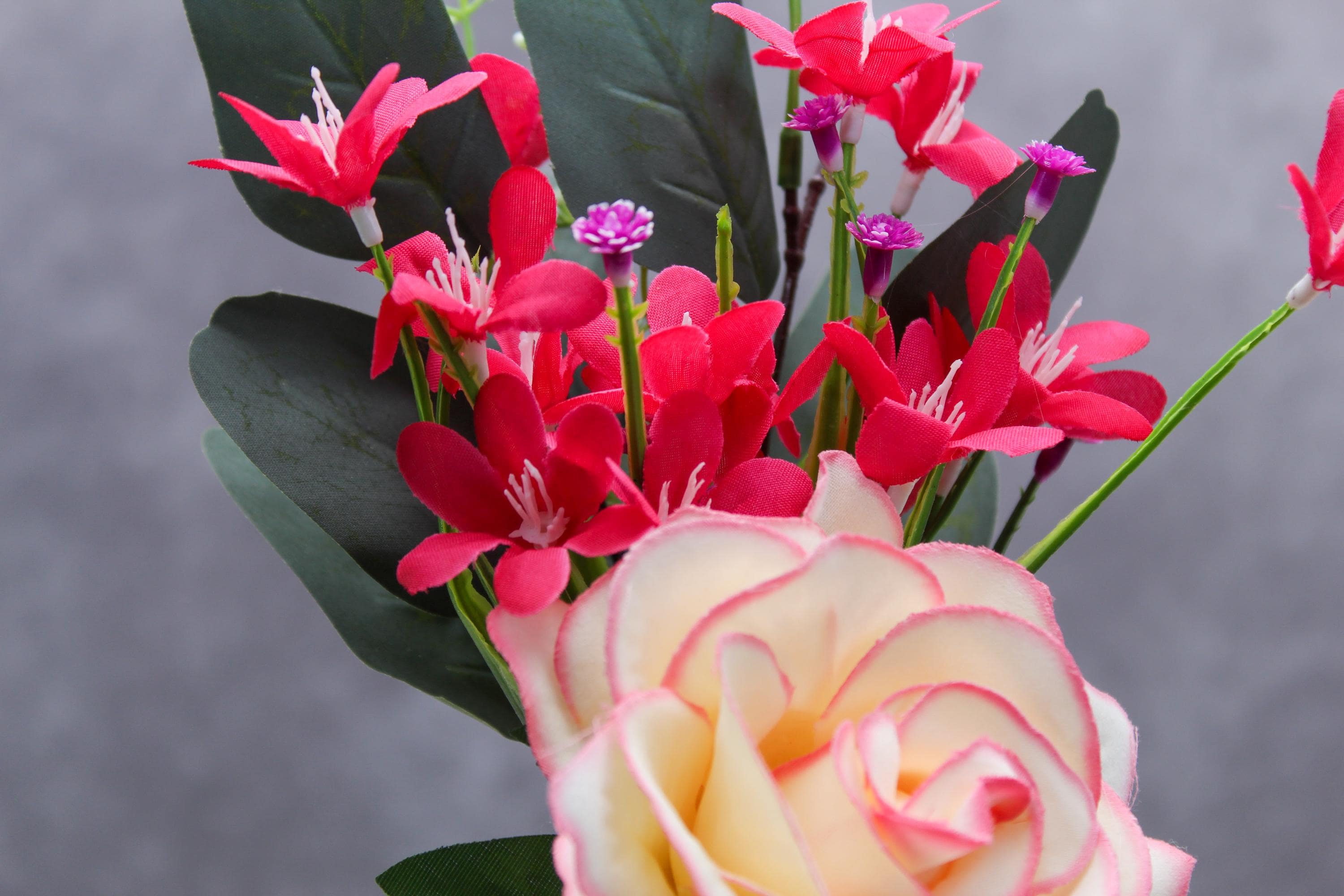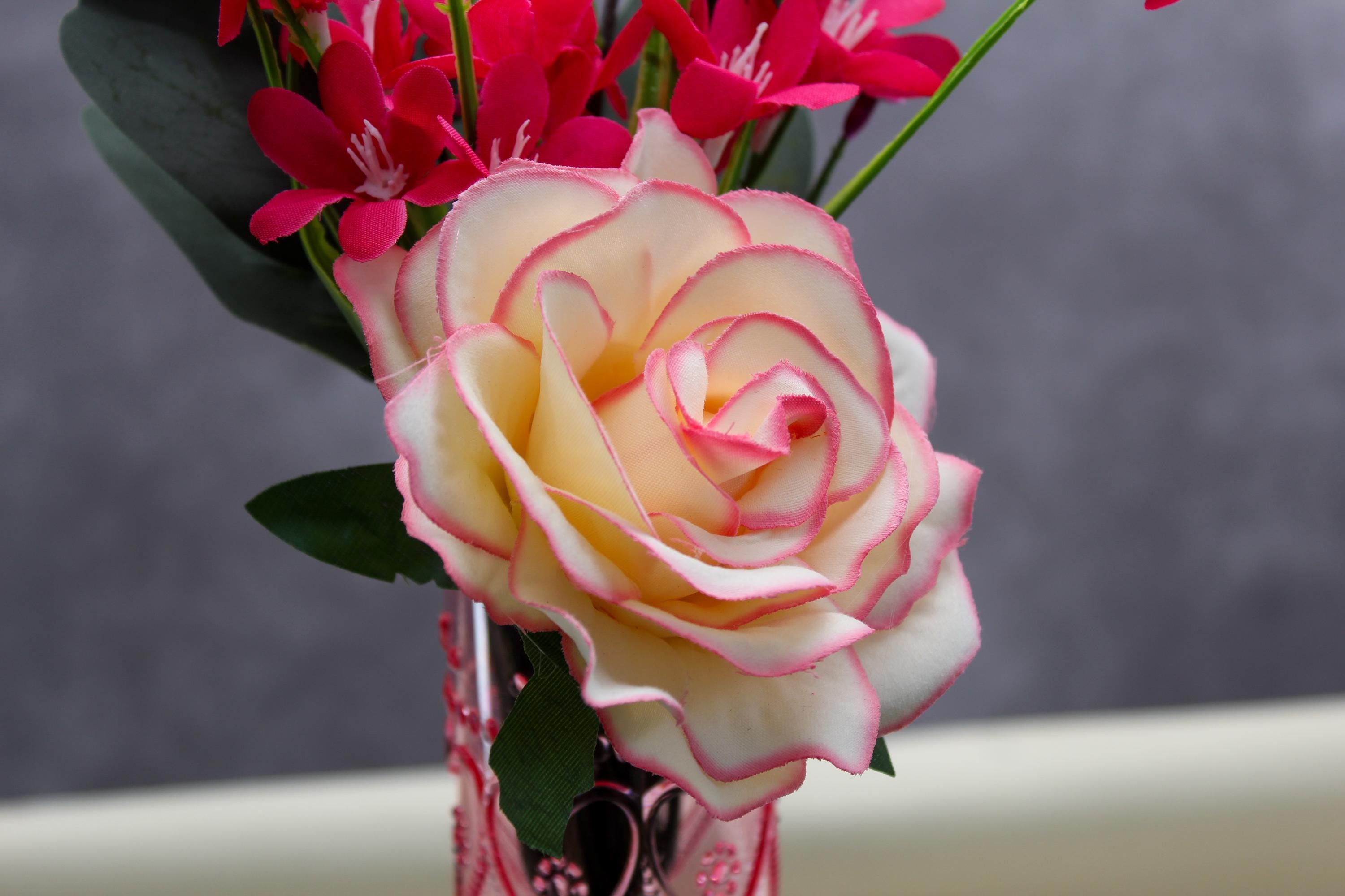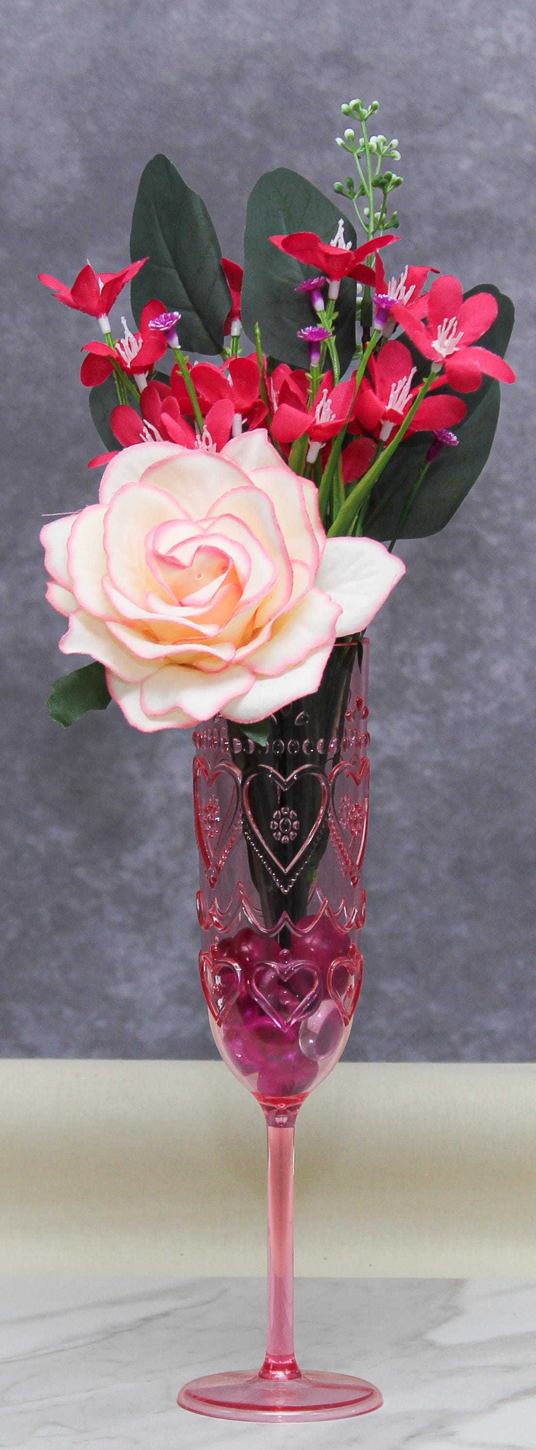 Brighten up your space with this elegant faux flower arrangement, featuring delicate pink and white roses paired with charming pink daffodils, all beautifully displayed in a romantic plastic glass. Perfect as a centerpiece for Valentine’s Day, anniversaries, weddings, or as a thoughtful gift for a loved one, this arrangement adds timeless beauty to any room without the need for maintenance.