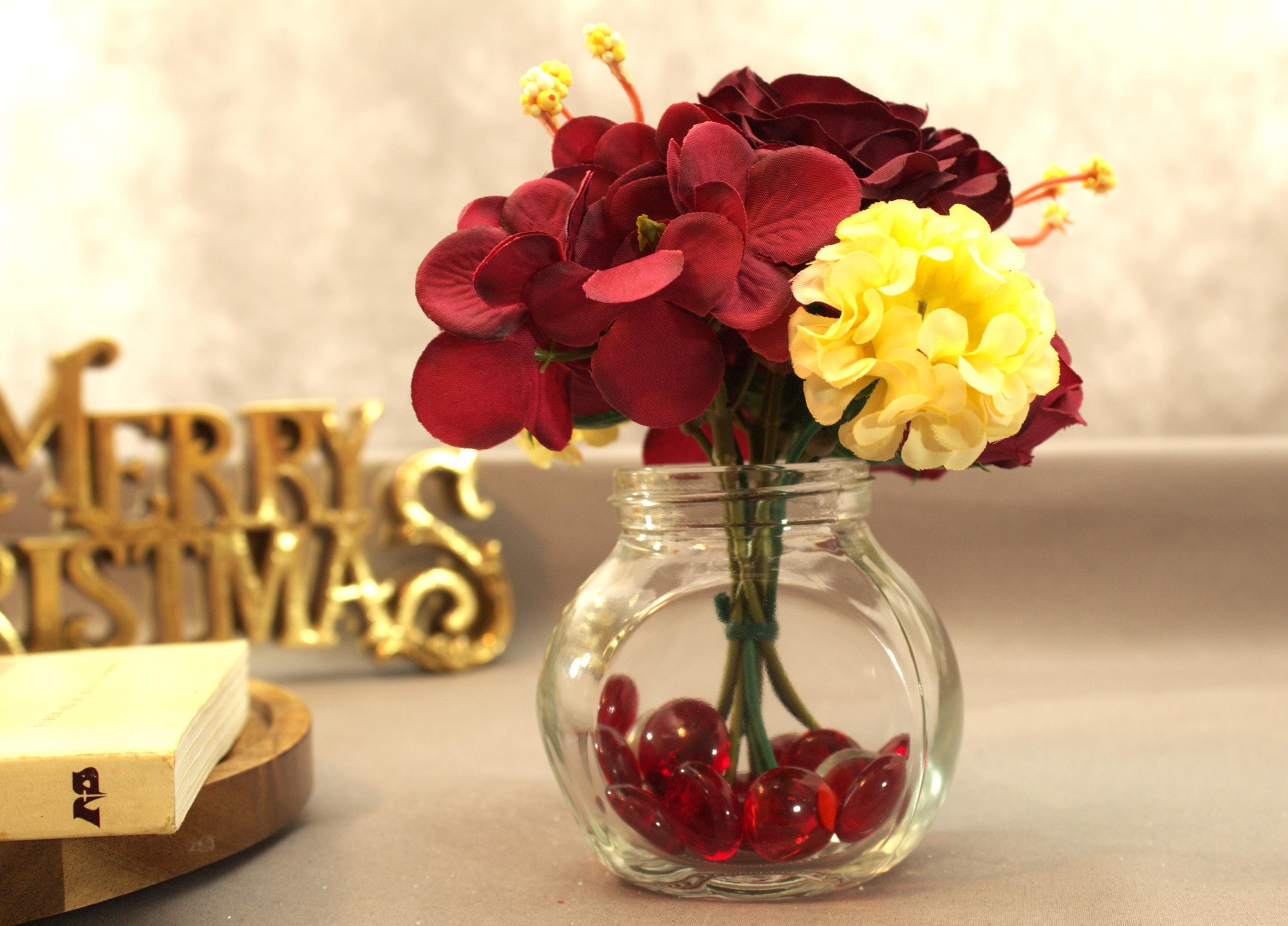 • Petite crystal vase: The clear, crystal-like vase shows off the stems and enhances your decor with a subtle sparkle.