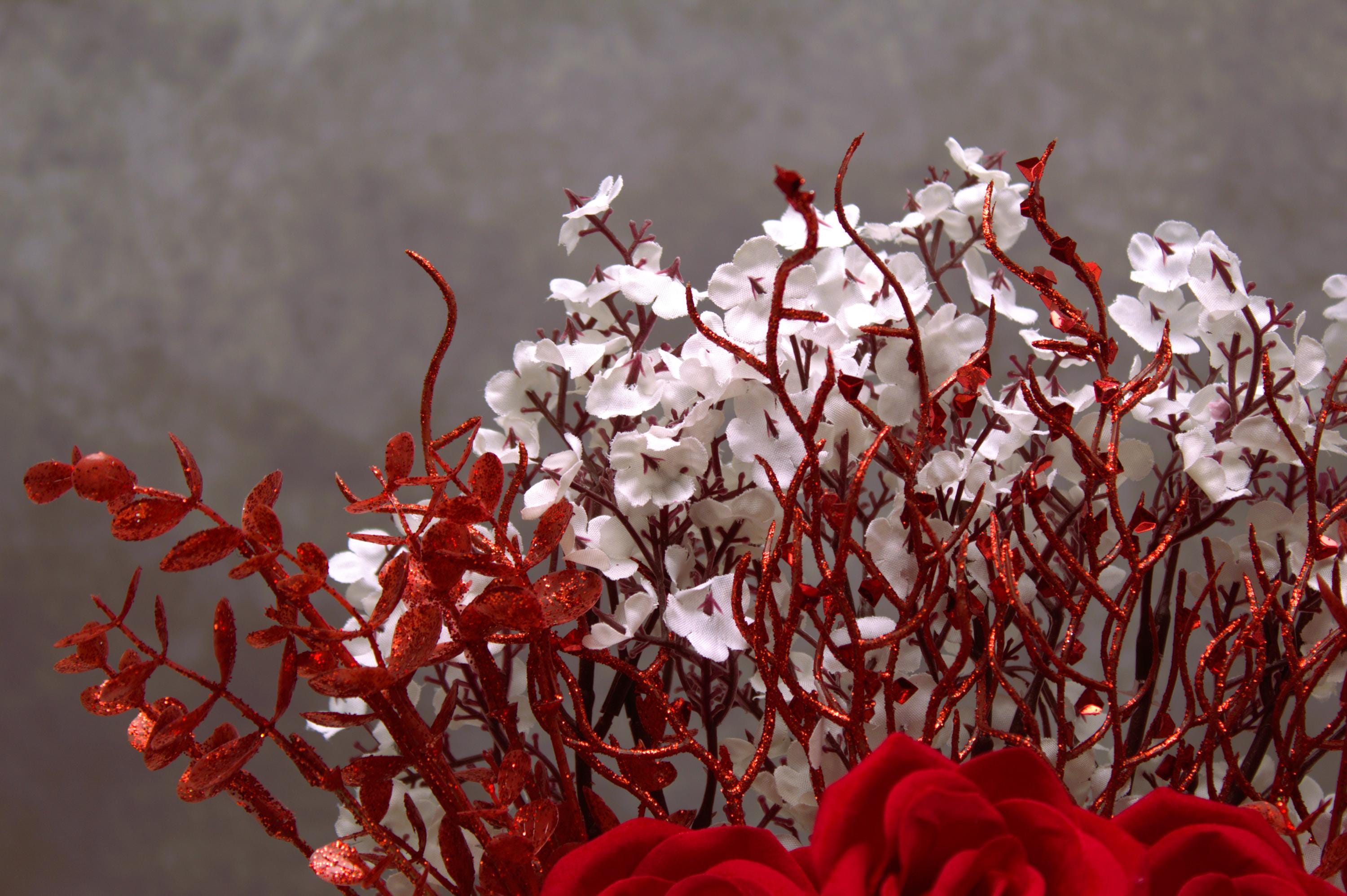 Romantic Glitter Accents: Eye-catching red glitter branches for an extra touch of elegance.