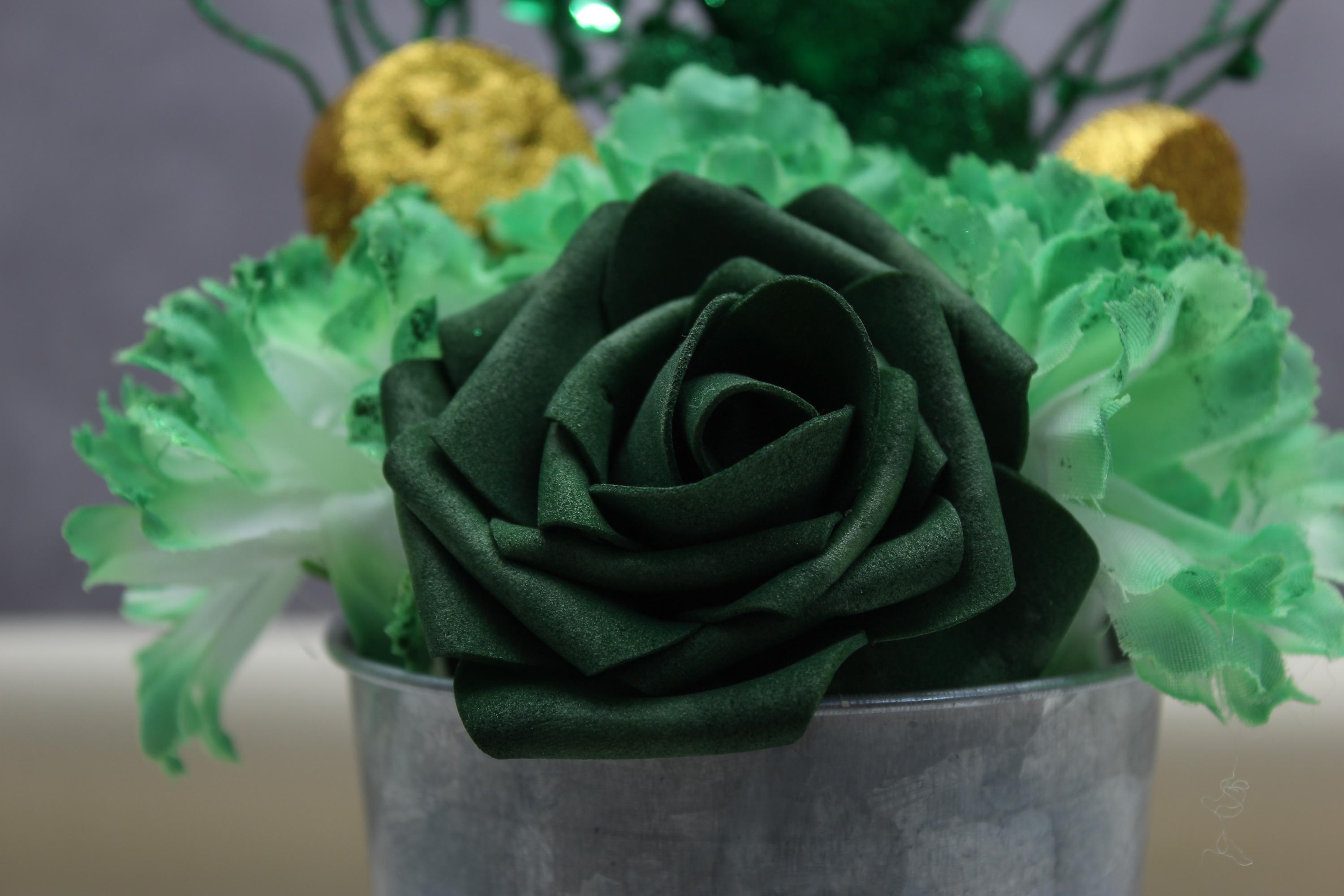 ✔️ Realistic faux green rose and carnations with glitter details