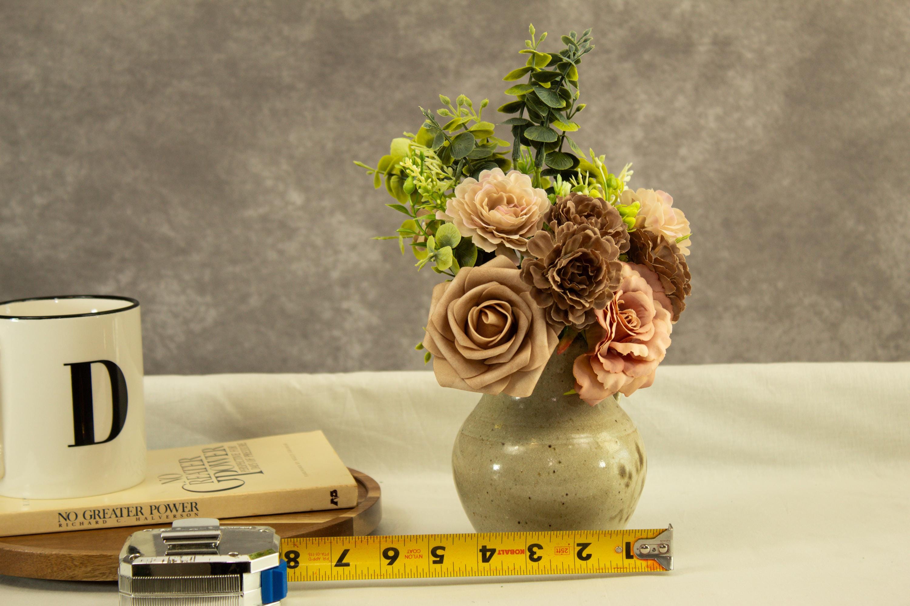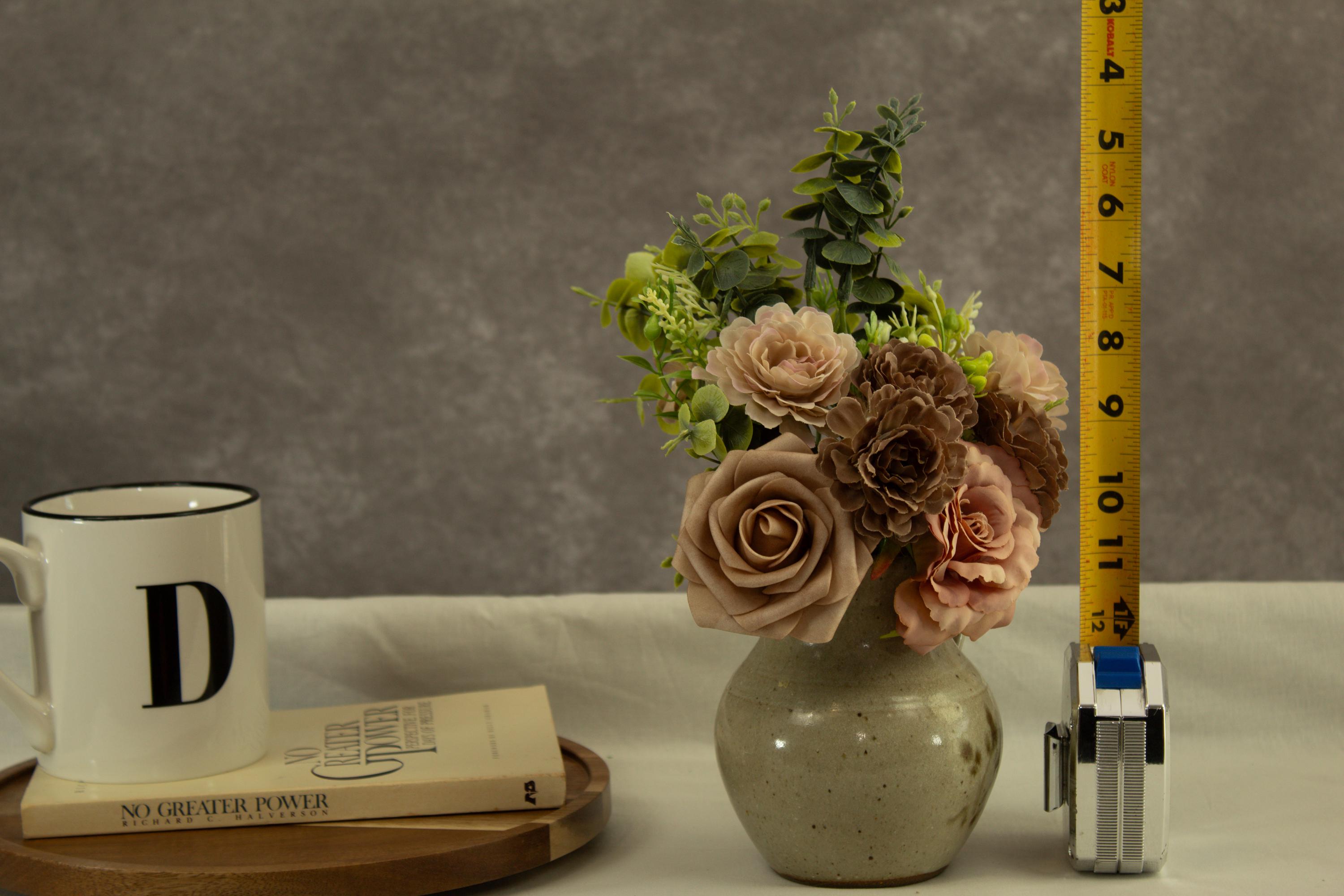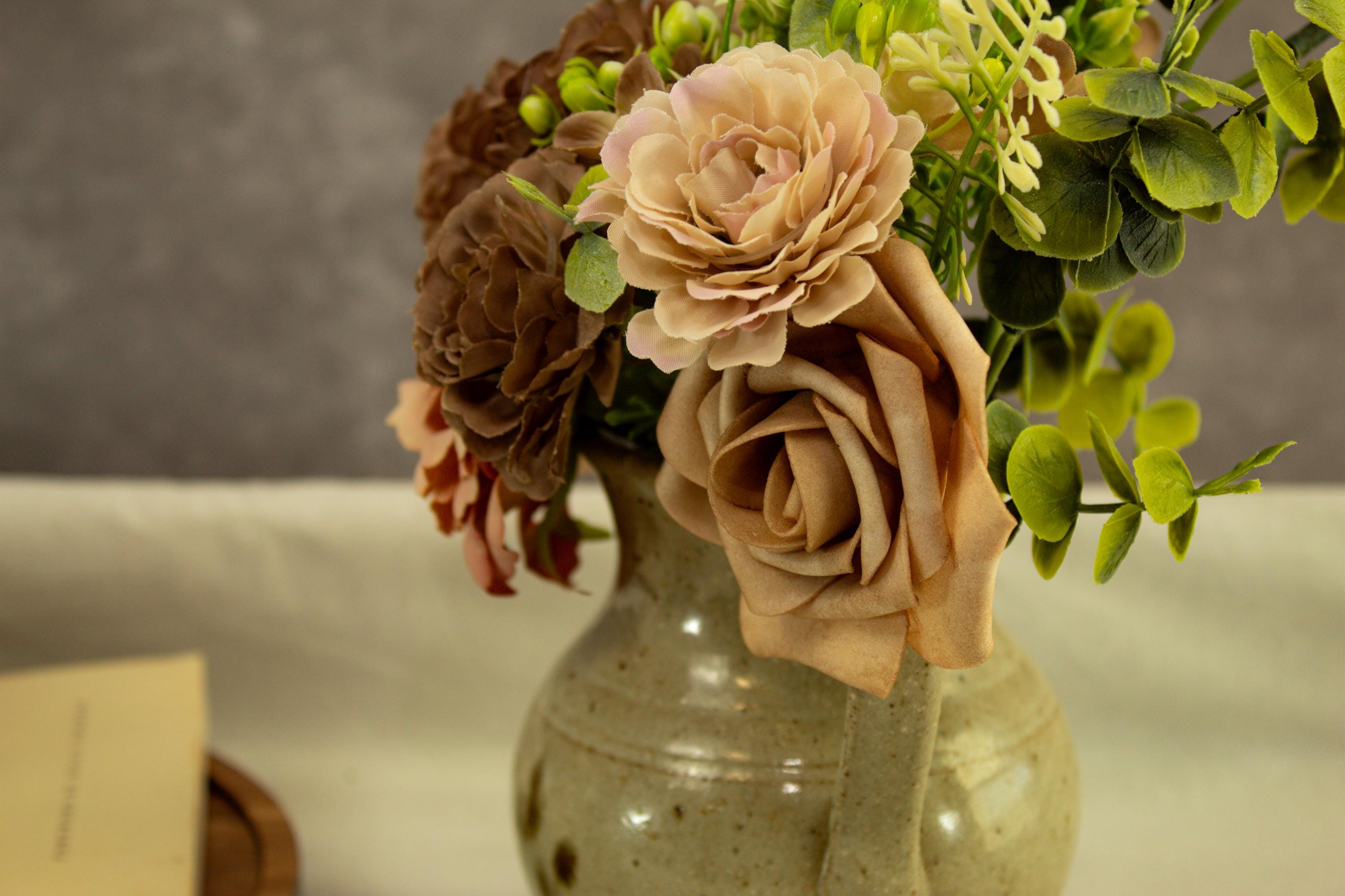 Bring soft, neutral beauty to your home with this rustic faux flower arrangement in a handmade-style ceramic vase. The warm, earthy tones and realistic florals make it an easy piece to style anywhere—from your kitchen table to your entryway console—without watering, wilting, or maintenance.