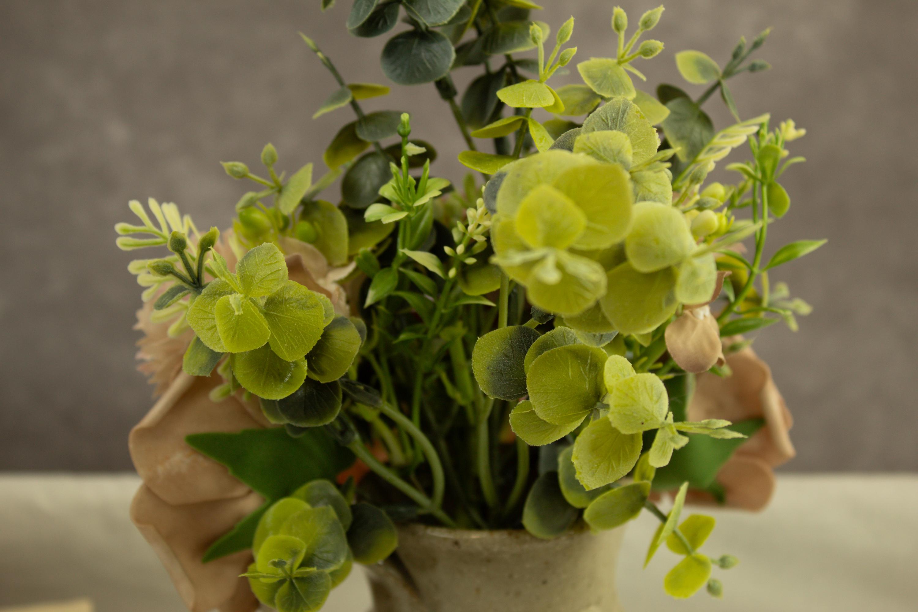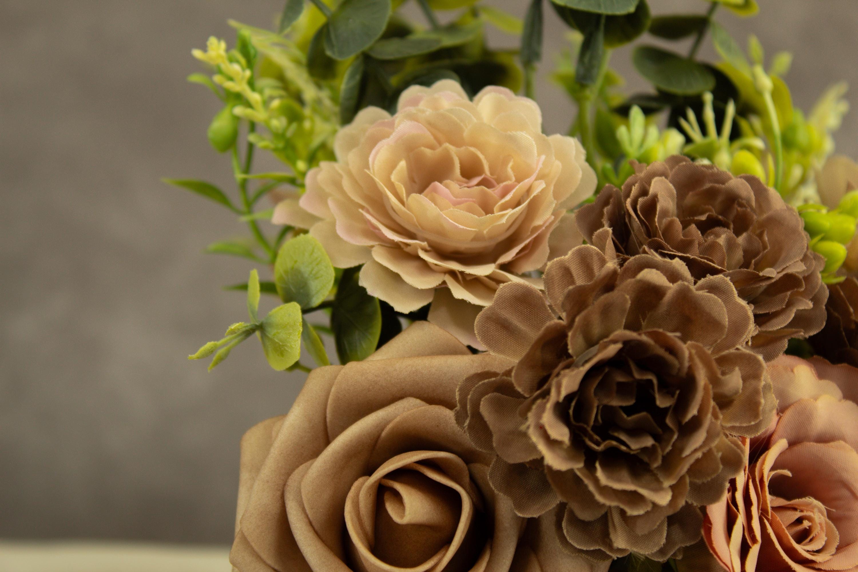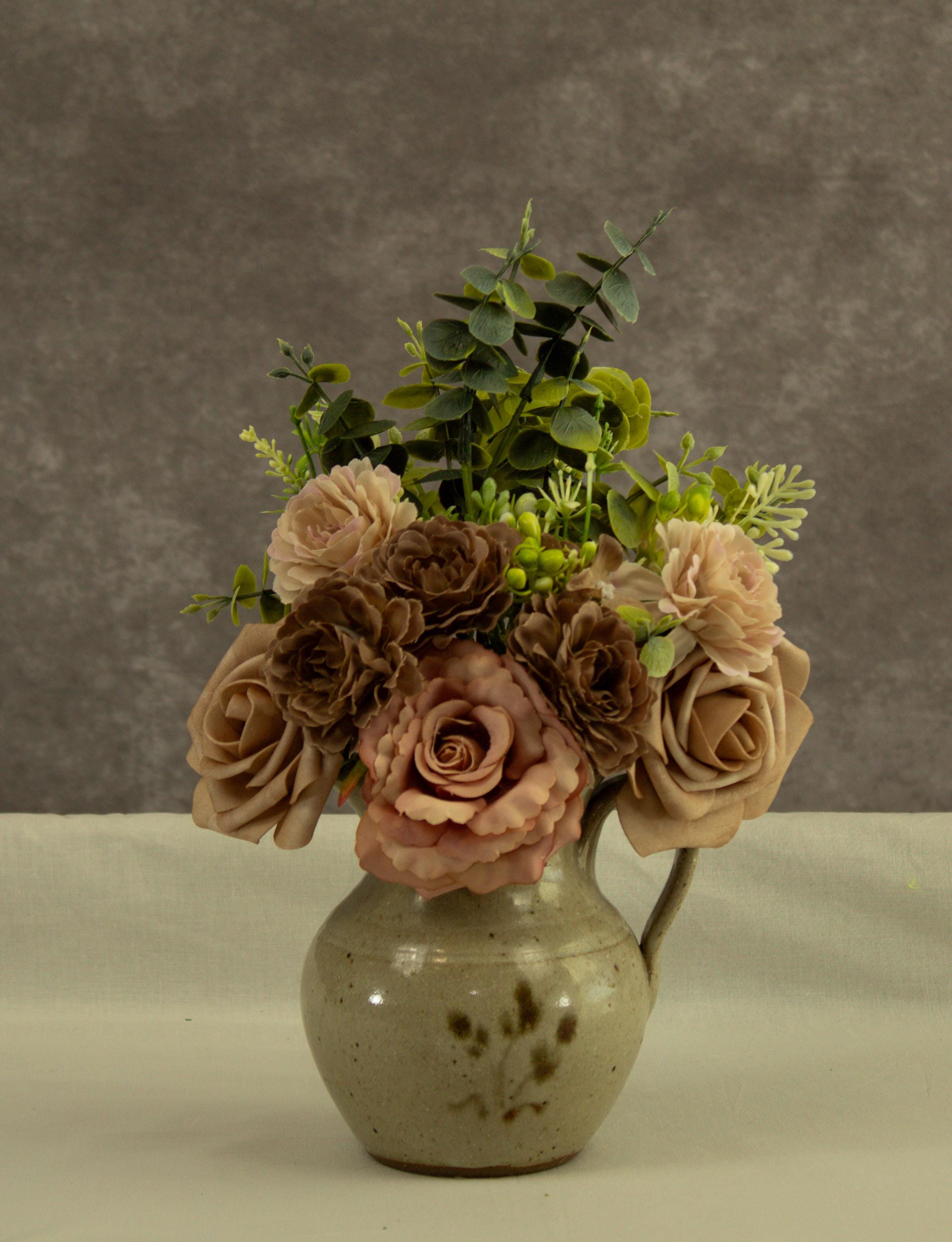 Bring soft, neutral beauty to your home with this rustic faux flower arrangement in a handmade-style ceramic vase. The warm, earthy tones and realistic florals make it an easy piece to style anywhere—from your kitchen table to your entryway console—without watering, wilting, or maintenance.