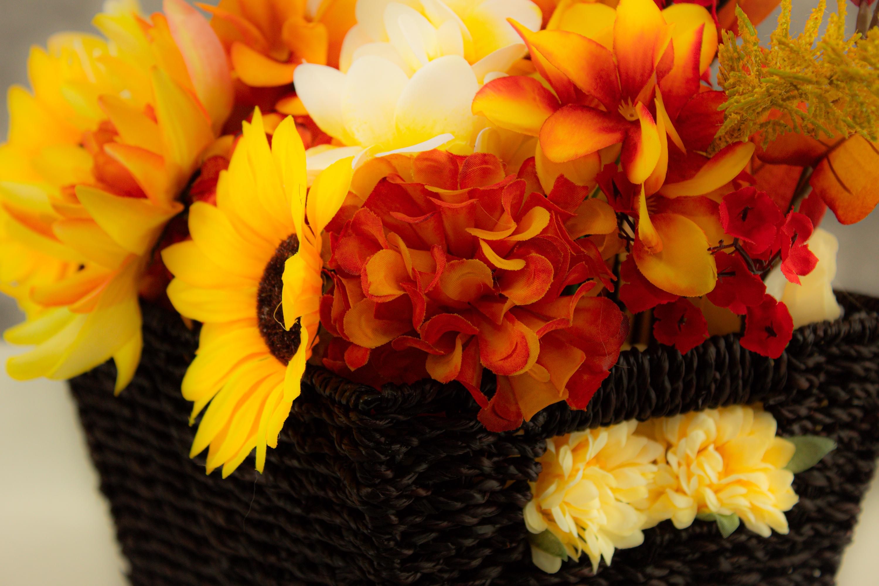 • Flowers: Sunflowers, dinner plate dahlia, hydrangea, peonies, daisies, baby’s breath, wheat, fall leaves
