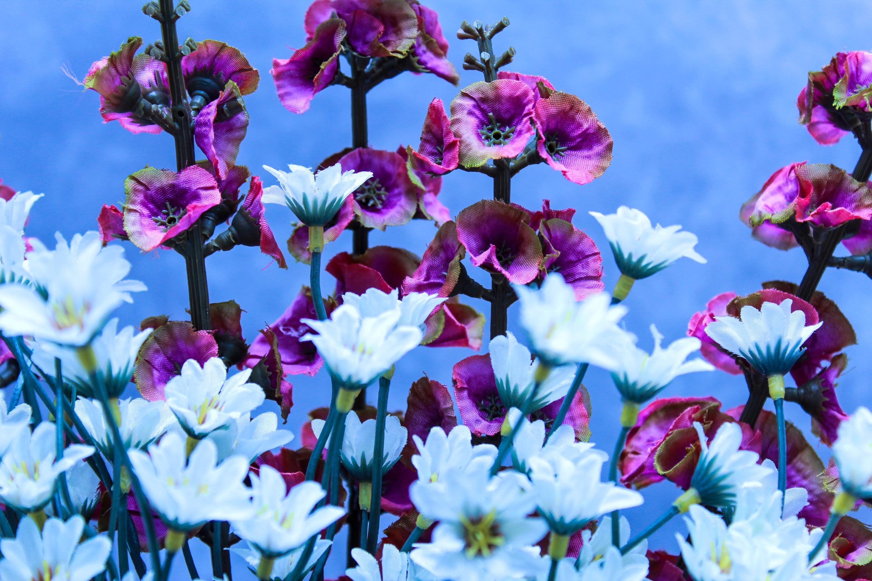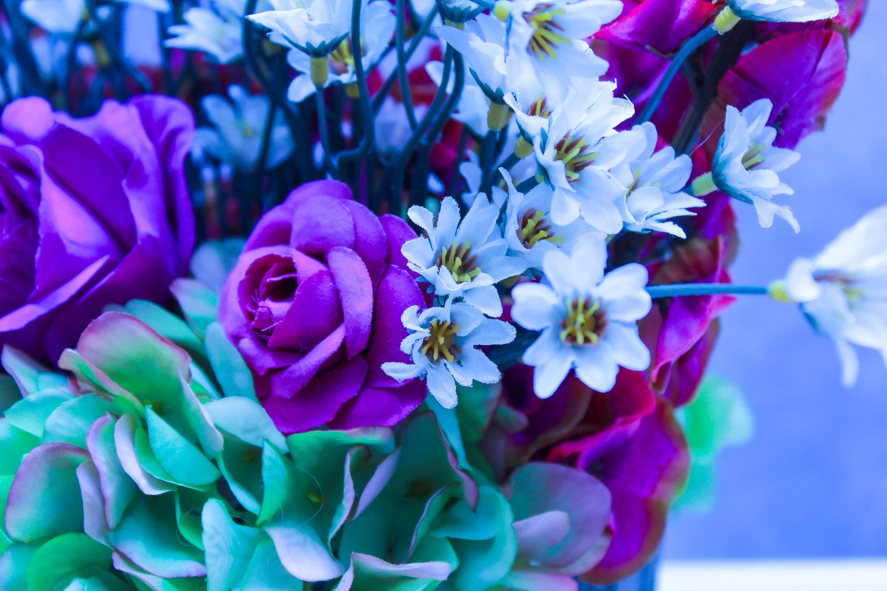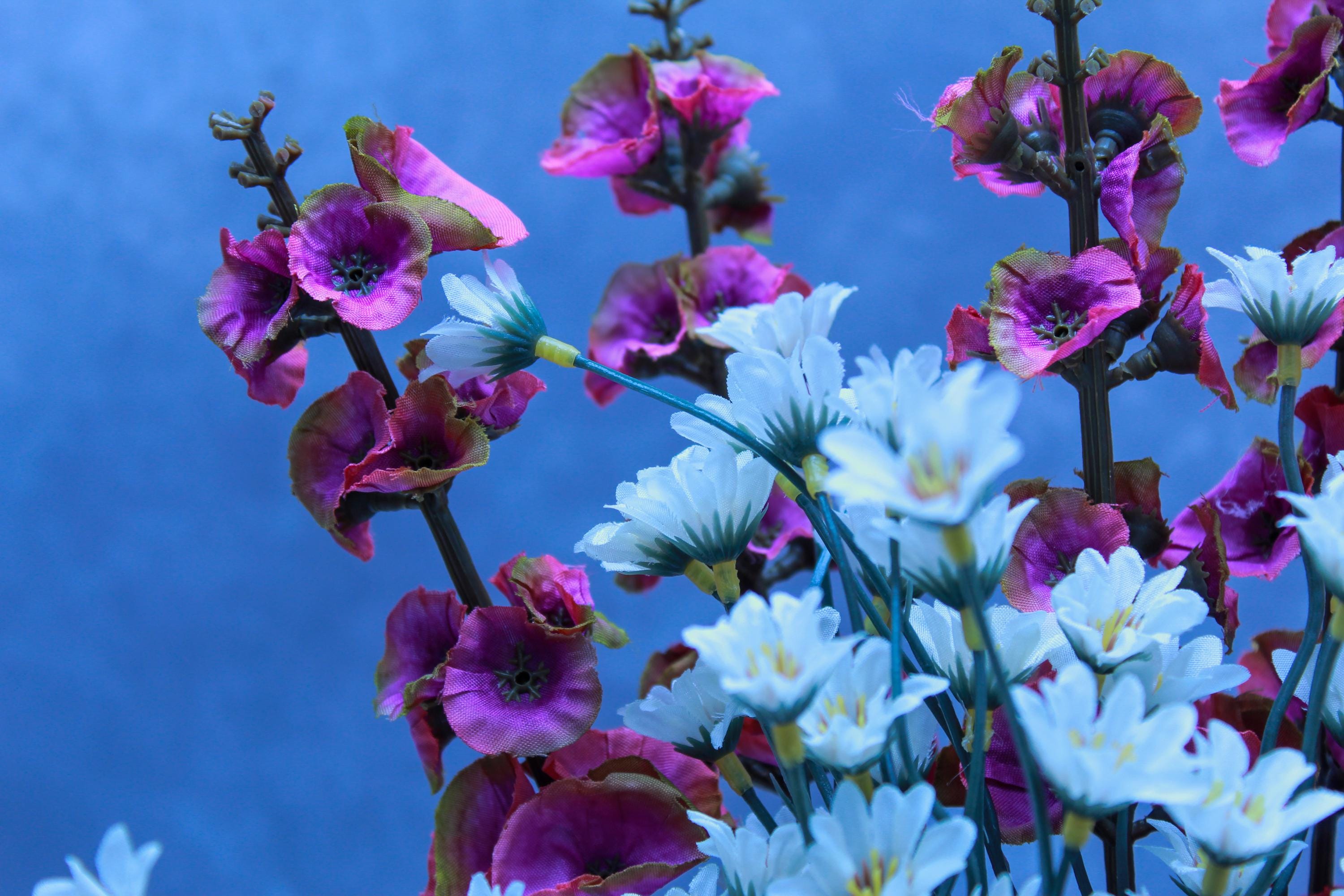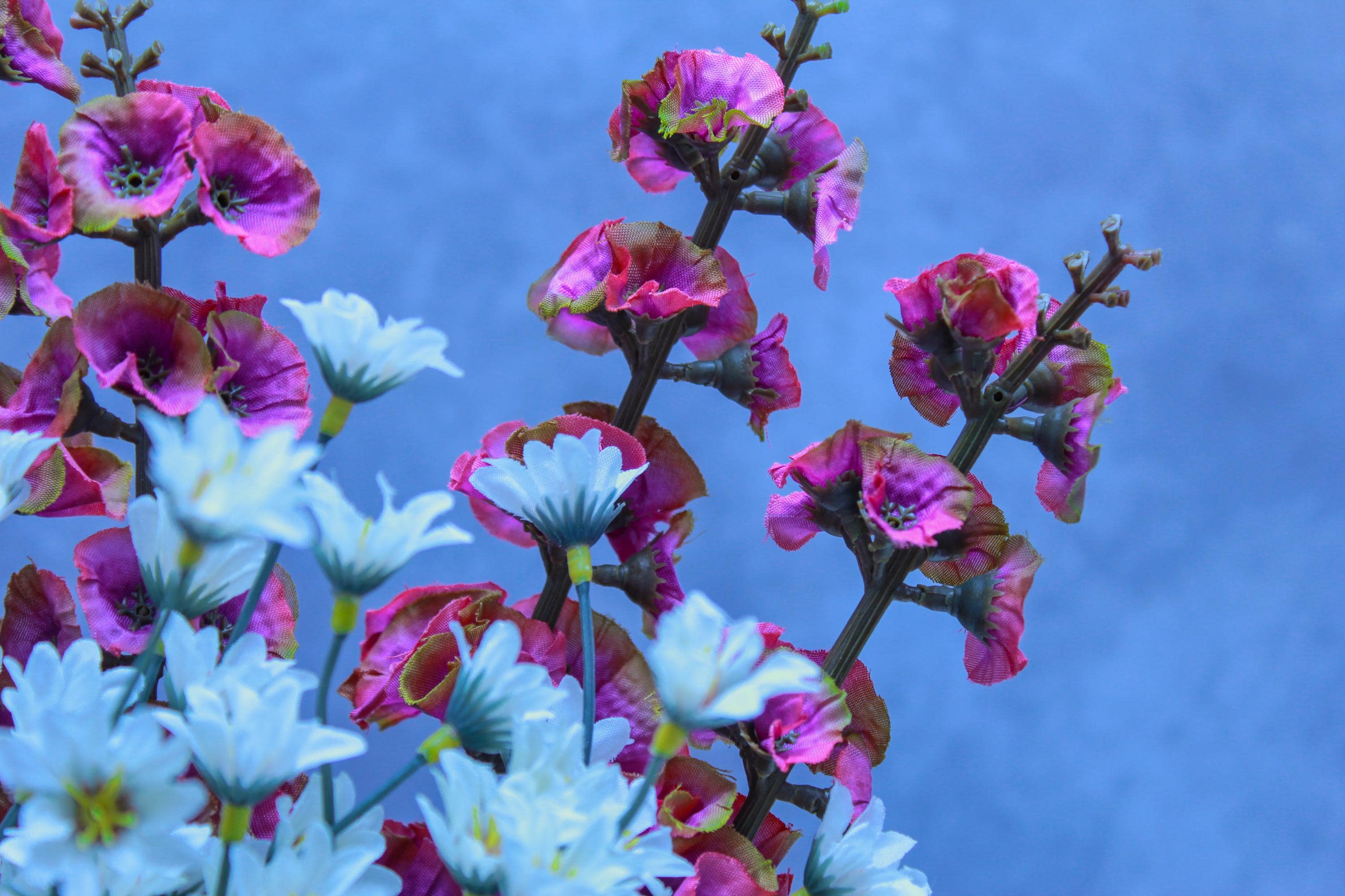 Make your space feel styled in seconds with this farmhouse faux flower centerpiece—a full, layered arrangement featuring purple roses, green hydrangea, and airy white daisy blooms with deep magenta accents for that “designer arrangement” look.